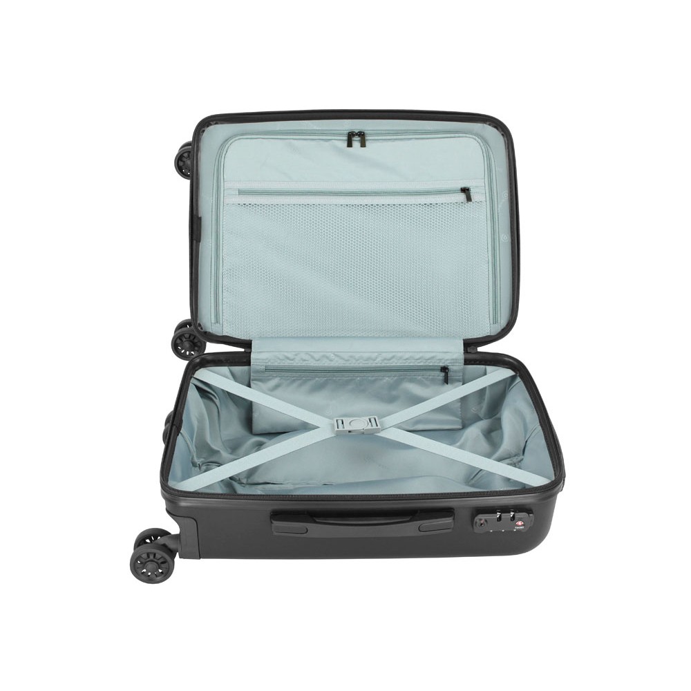 Внешняя организация: телескопическая ручка, кодовый замок TSA, 4 двойных колеса, боковая ручка, ручка на дне