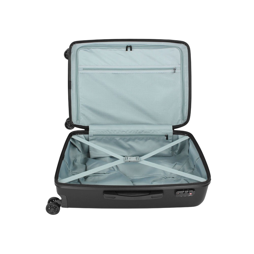Внешняя организация: телескопическая ручка, кодовый замок TSA, 4 двойных колеса, боковая ручка, ручка на дне