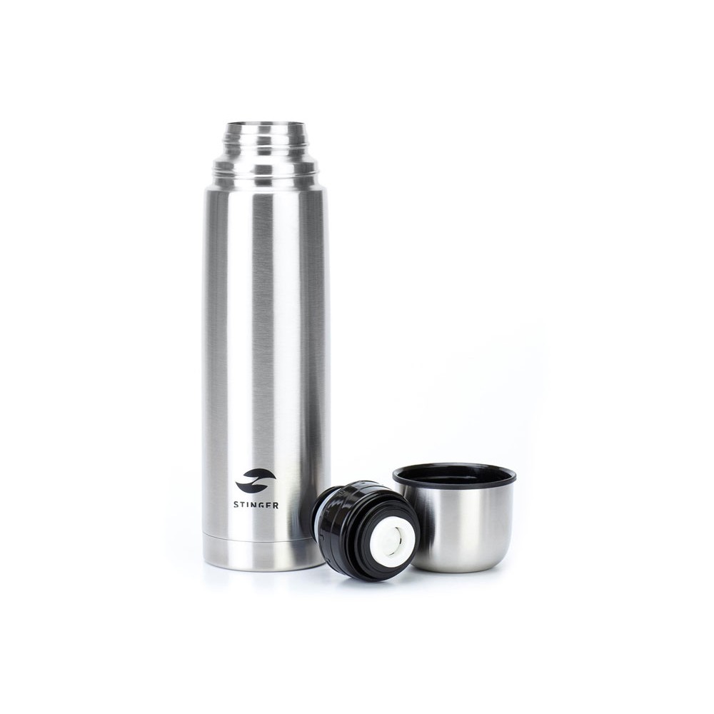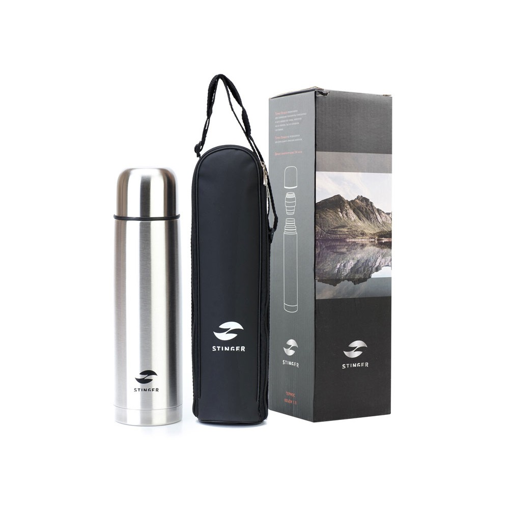 Технические характеристики Термос Stinger с чехлом, 1 л, узкий, сталь/кожзаменитель, с чехлом, серебристый, 8,6 х 8,6 х 31,4 см