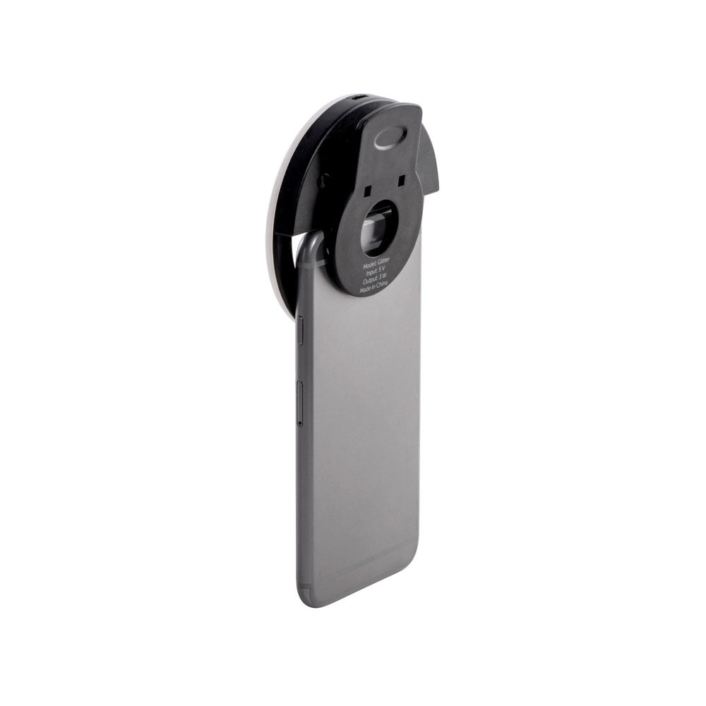 Световое кольцо "Glitter" делает ваши селфи- фото и видео более качественными за счет дополнительного освещения. Подсветка представлена нейтральным белым цветом от 48 светодиодов с 3 режимами яркости. Время непрерывного свечения - до 2 часов. Можно быстро зарядить от любого пауэрбэнка по micro USB. Благодаря удобной конструкции селфи-кольцо устанавливается и снимается за секунду. На корпусе имеются силиконовые защитные полоски, чтобы исключить даже малейшие повреждения экрану смартфона.