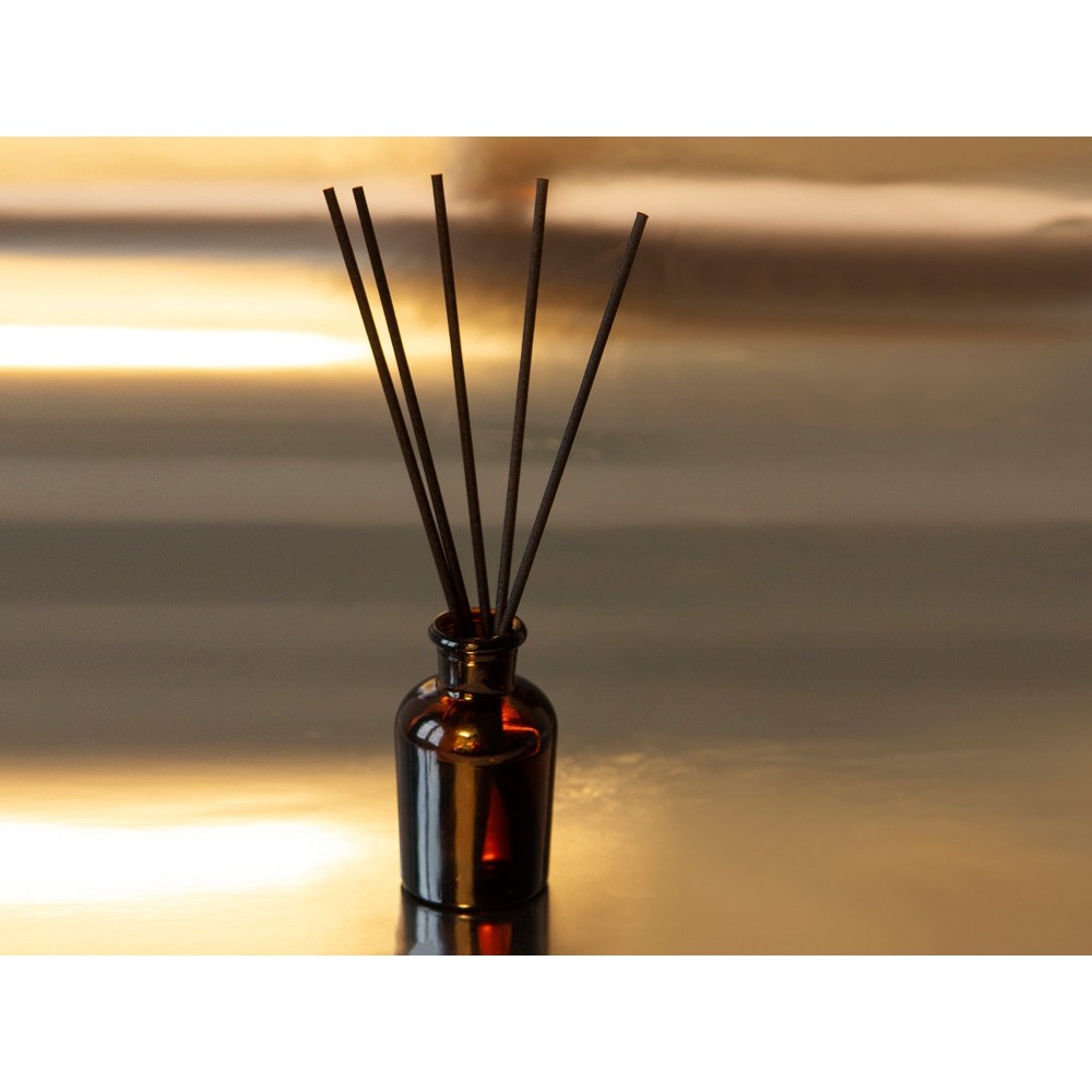 Объём диффузора 50 мл. Его будет достаточно для умеренного поддержания аромата в комнате до 15м2 в течение двух месяцев использования. Насыщенность аромата регулируется количеством используемых фибровых палочек.