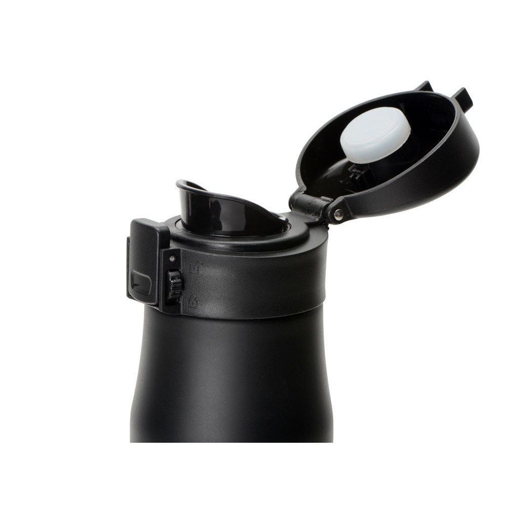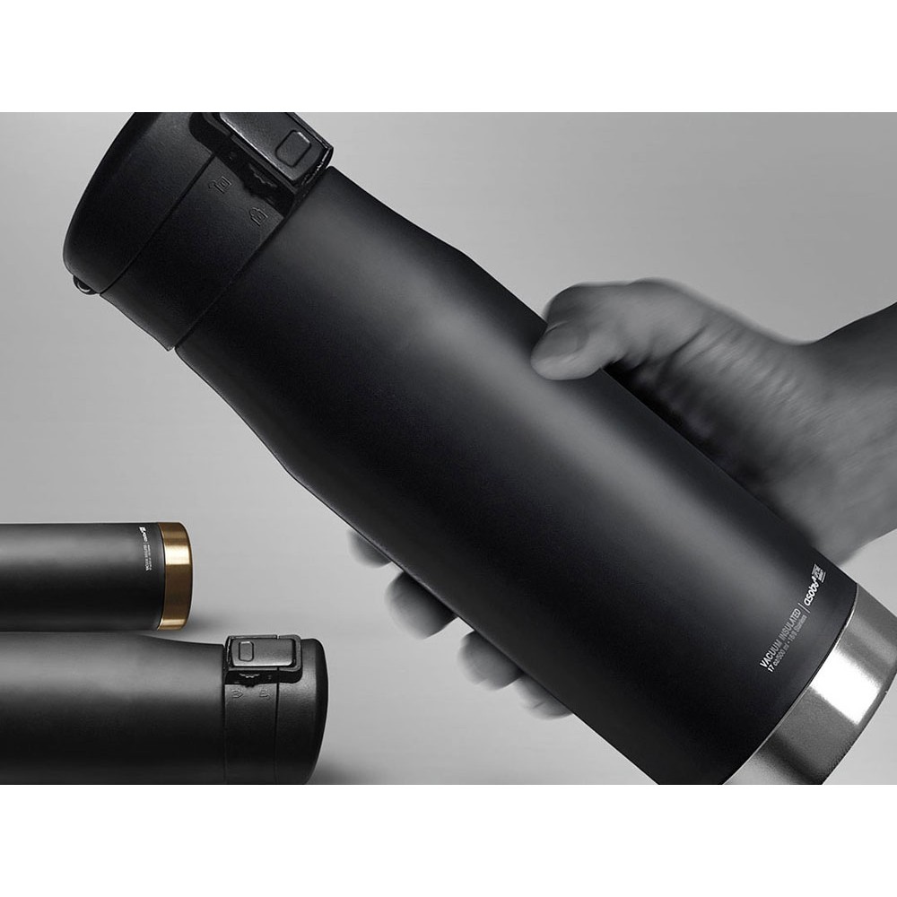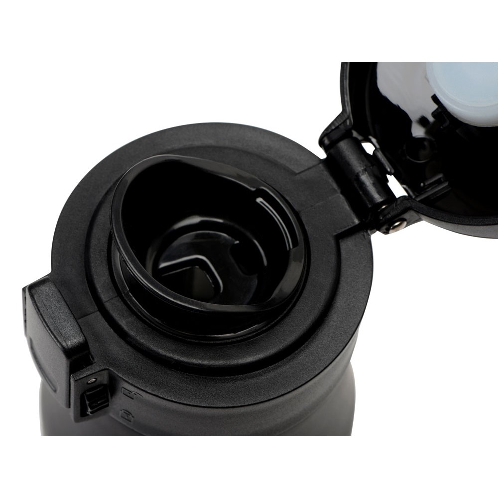 Матовый черный термос с блестящей отделкой дна. Герметичная крышка с откидным механизмом, кнопкой открывания и блокировкой от случайного нажатия защищают термос от проливания, благодаря чему содержимое вашей сумки всегда будет в безопасности с Liberty Canteen. Широкое горлышко позволяет удобно насыпать в термос лед и мыть внутреннюю колбу.