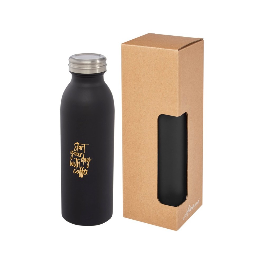 Бутылка Riti изготовлена из нержавеющей стали 18/8, имеет двойные стенки, медную обшивку и вакуумную изоляцию, что идеально подходит для длительного удержания температуры холодных и горячих напитков. 100%-я герметичность, без БФА, испытано и одобрено в соответствии с немецким законодательством о безопасности пищевых продуктов (LFGB). Проверена на содержание фталатов и одобрена для использования в соответствии с правилами REACH. Объем 500 мл. Рекомендуется мыть вручную. В подарочной коробке из переработанного картона.
