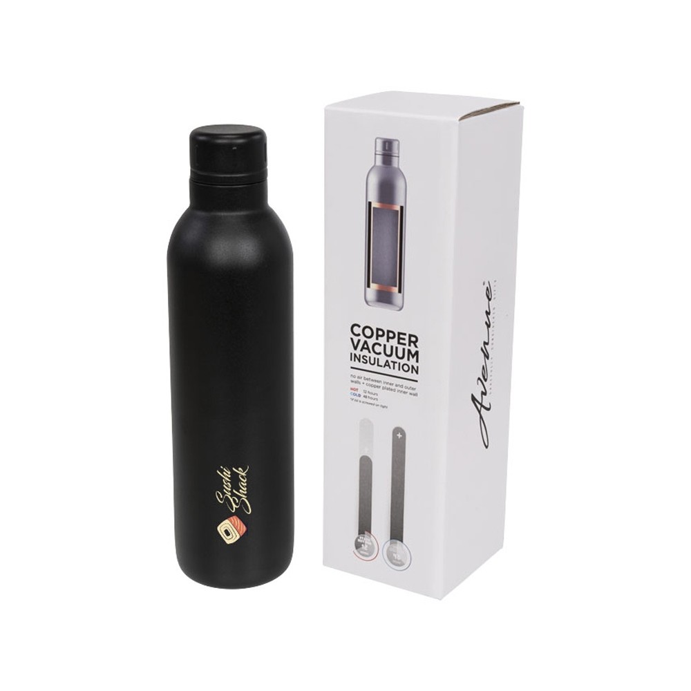 Спортивная бутылка Thor с вакуумной изоляцией объемом 510 мл. Прочная бутылка с двойными стенками из нержавеющей стали и вакуумной медной изоляцией сохраняет напитки холодными в течение 48 часов и горячими в течение не менее 12 часов. Конструкция бутылки предотвращает образование конденсата на внешней стороне. Модное, прочное порошковое покрытие. Герметичная завинчивающаяся крышка из нержавеющей стали. Объем – 510 мл. Предлагается в подарочной коробке Avenue. Нержавеющая сталь.