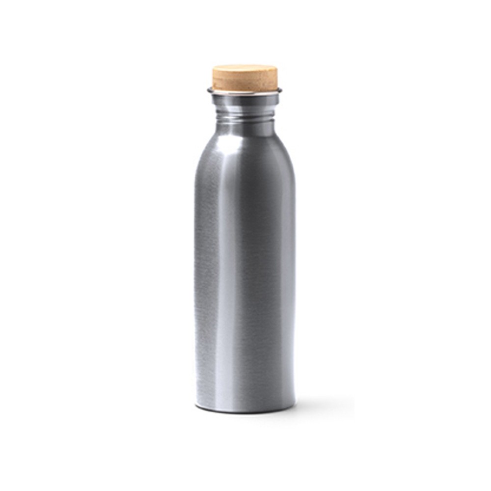 Бутылка из переработанной нержавеющей стали 304 с матовой отделкой и бамбуковой крышкой. Емкость 650 мл.