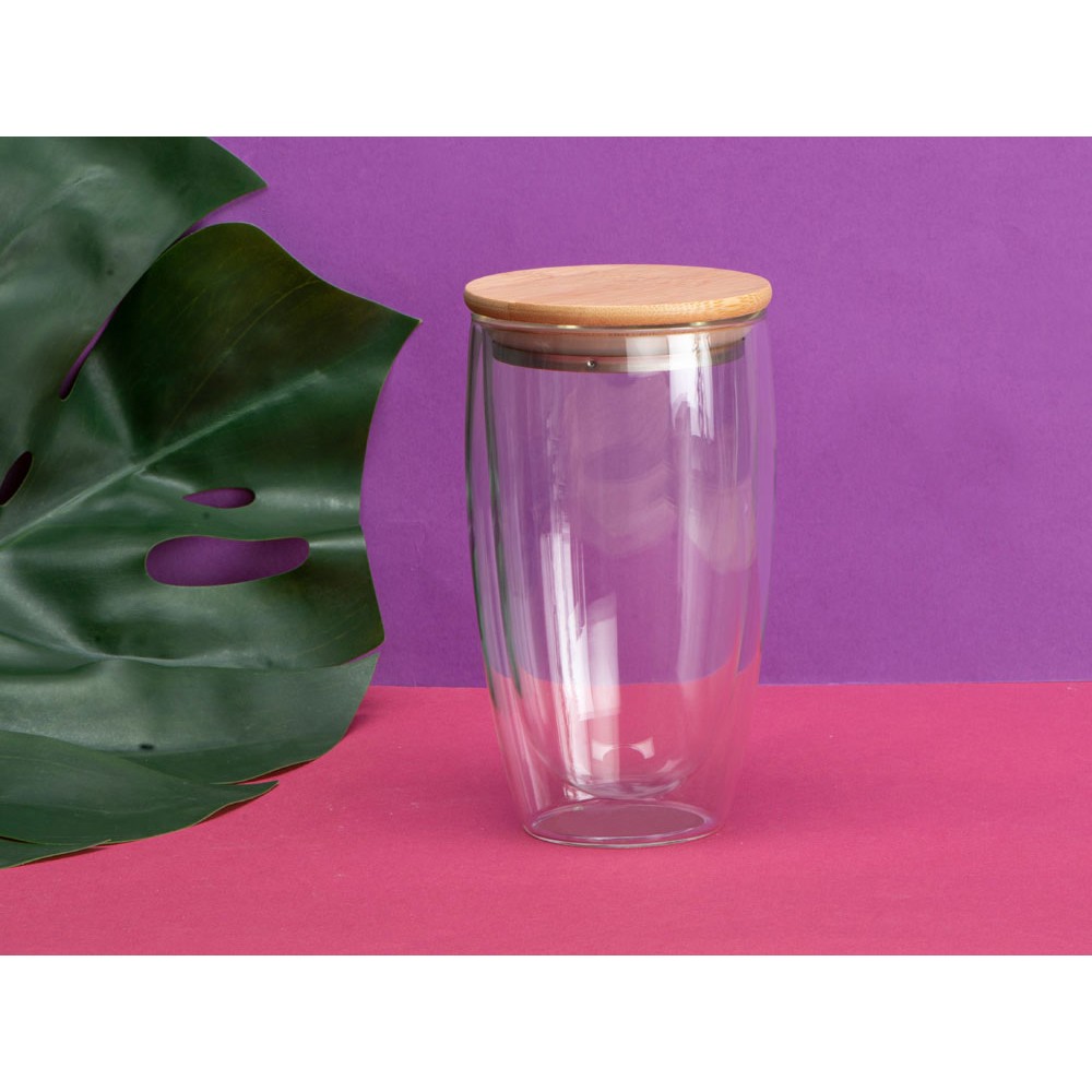 Стакан Batur с двойными стенками и бамбуковой крышкой, 450 мл