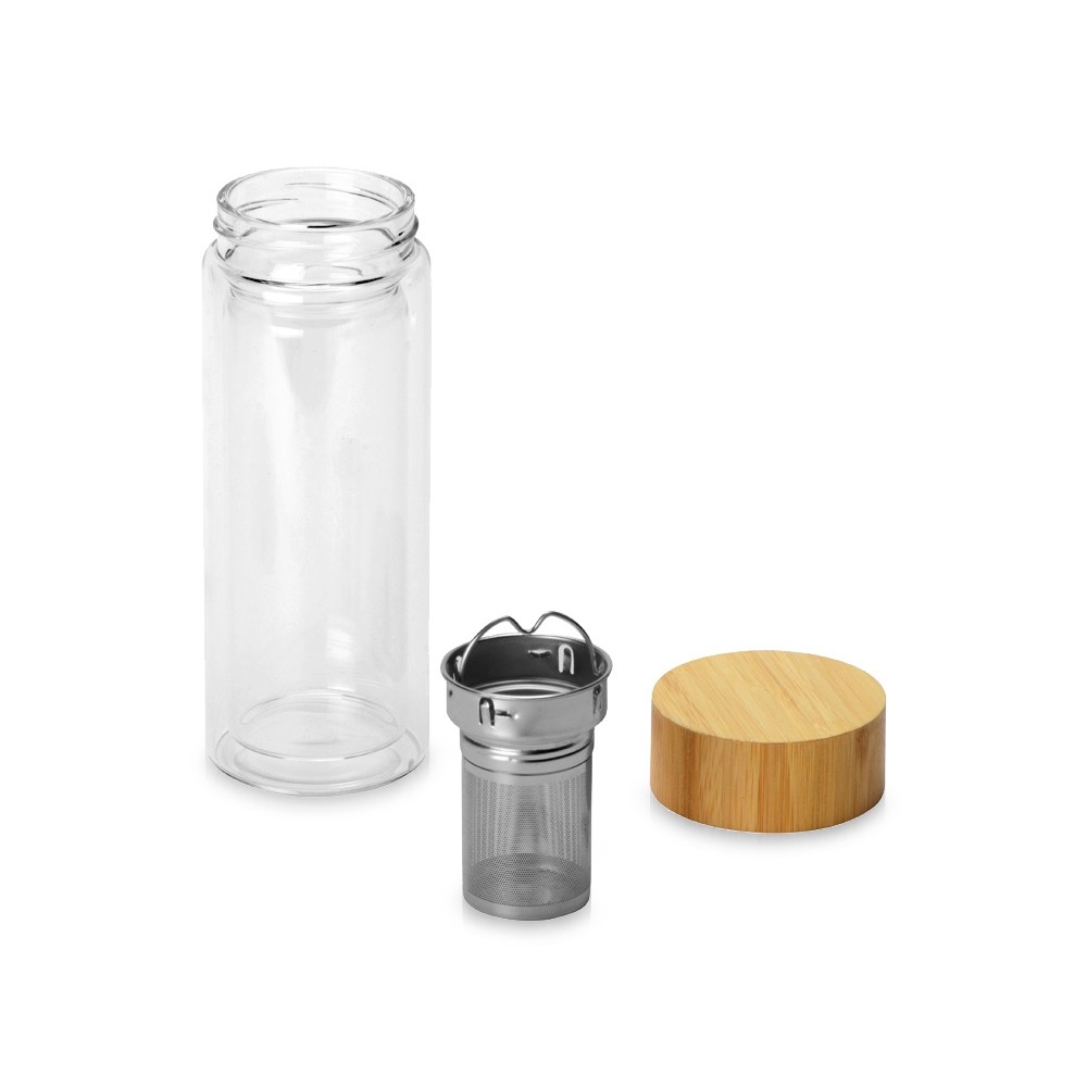 Стеклянный термос из стекла с двойными стенками и ситечком 320 мл "Badachu" в чехле, прозрачный