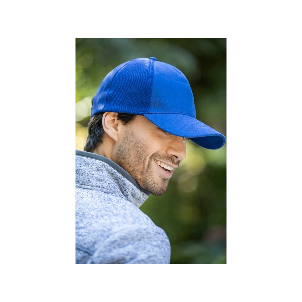 Изогнутый козырек. Панели задней части выполнены из сетчатой ткани. Обшитые люверсы для вентиляции. На липучке. Хлопок-твил "браш" 100% Хлопок, 260 g/m2, Contrast fabric, Сетчатая ткань (mesh) 100% Полиэстер, 180 g/m2.