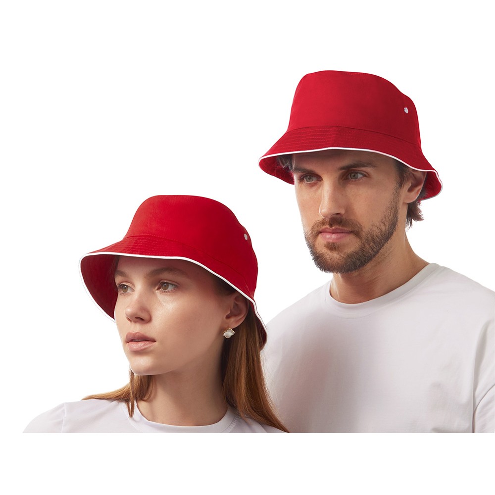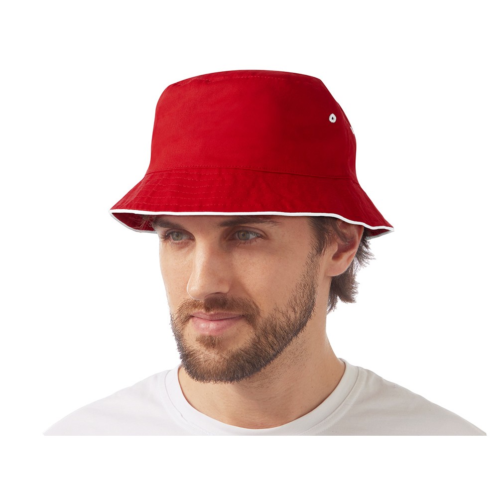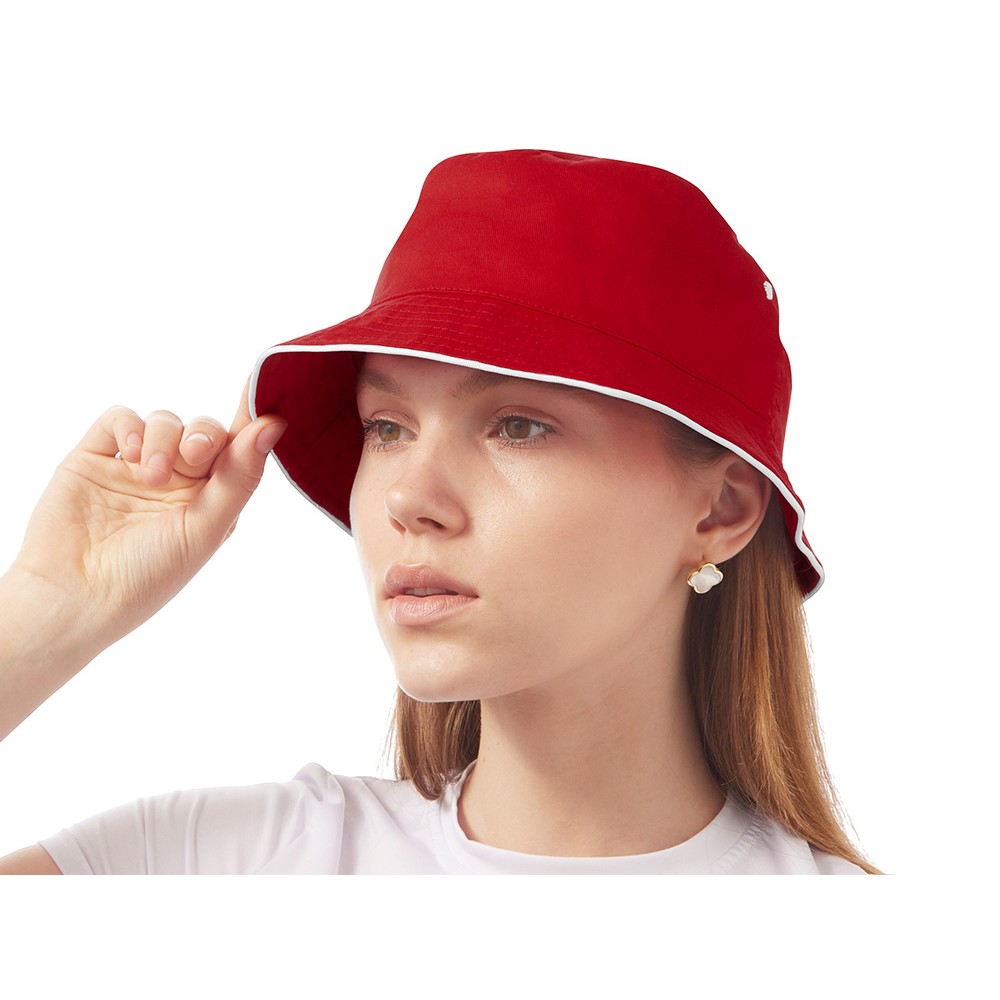 Панама из хлопкового твила с контрастным кантом и контрастными вентиляционными отверстиями.
