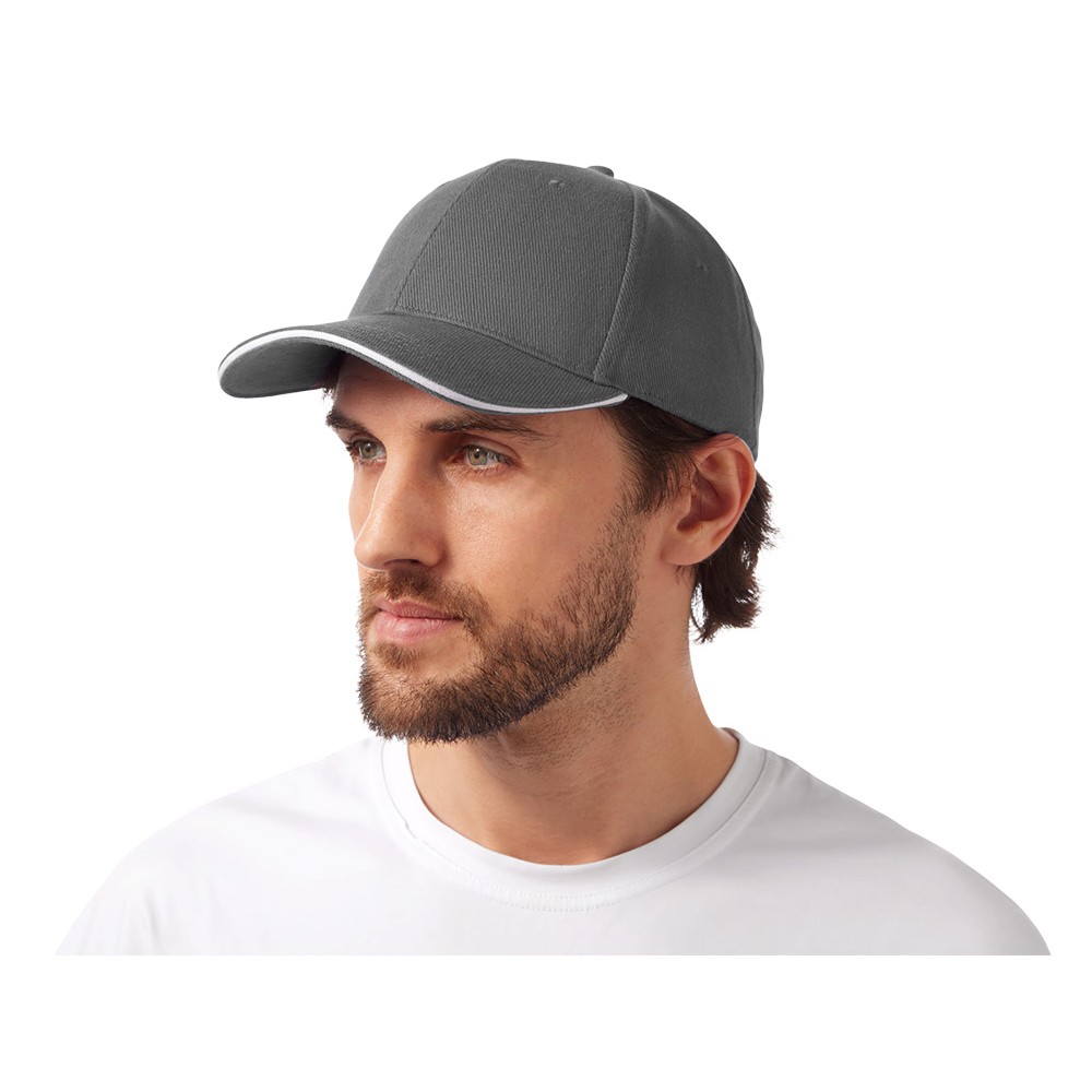 Стильный контрастный кант по козырьку и заднему хлястику добавляет изделию выразительности и делает бейсболку заметным элементом образа.