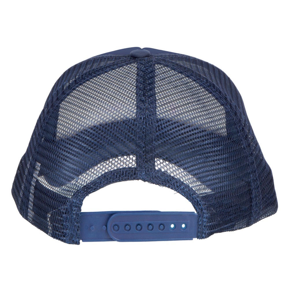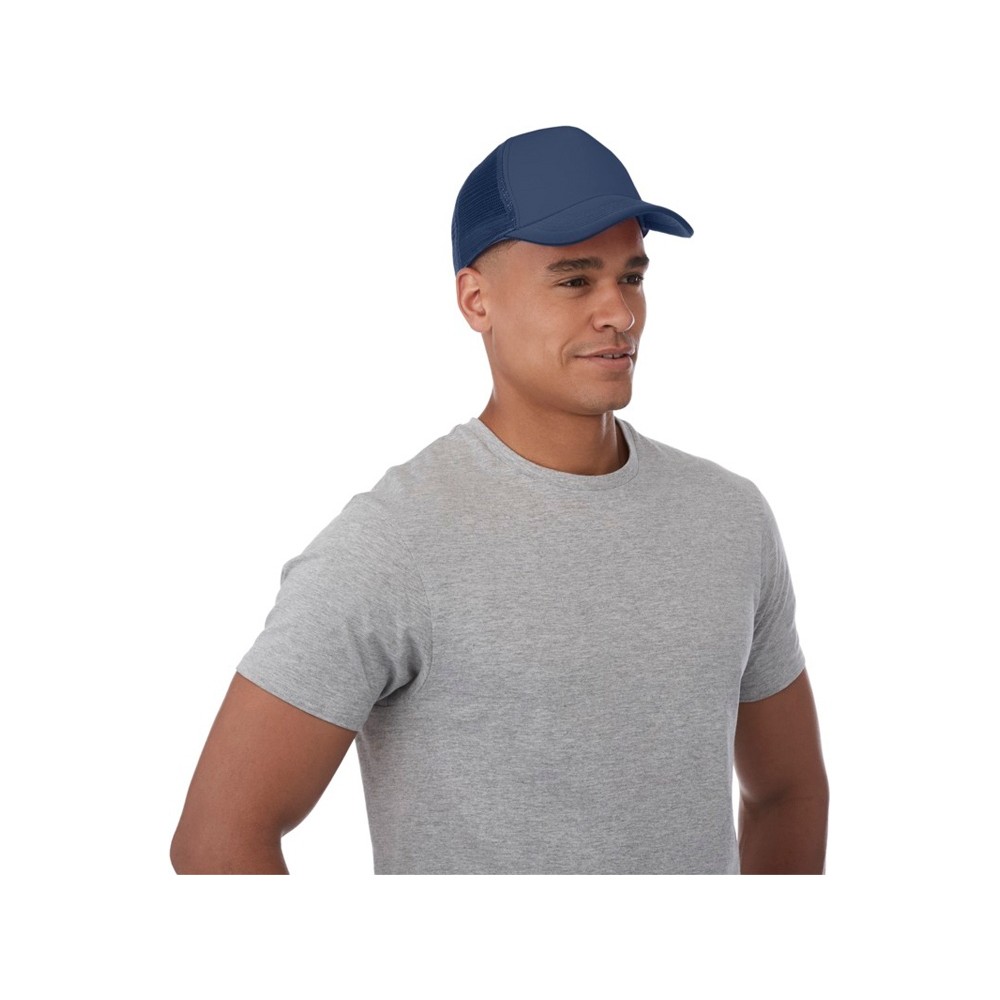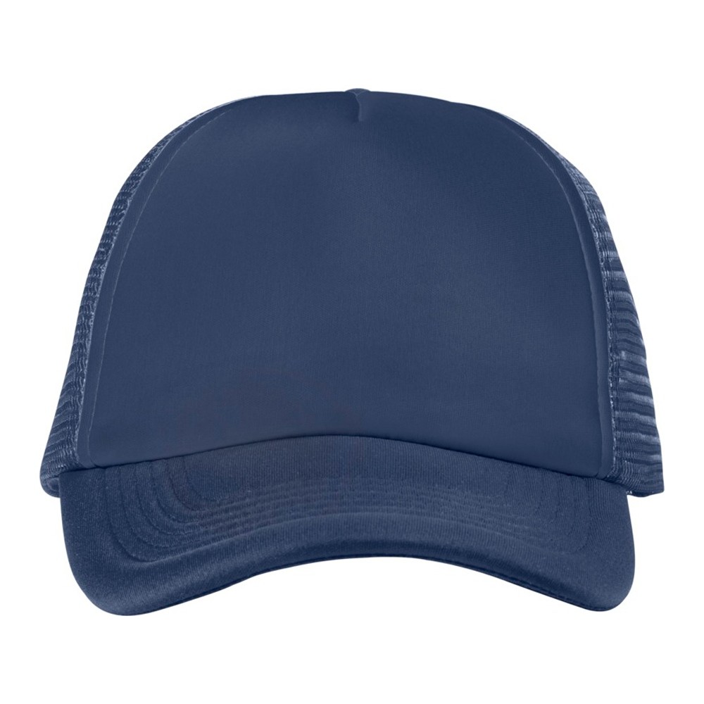 Кепка из 5 панелей Trucker. Оригинальная кепка на окружность головы 58 см с передней поролоновой частью, пластиковой сеткой сзади и пластиковой застежкой. Эта кепка полностью соответствует требованиям к соединениям AZO, формальдегиду и ПХФ. Полиэстер и поролон.