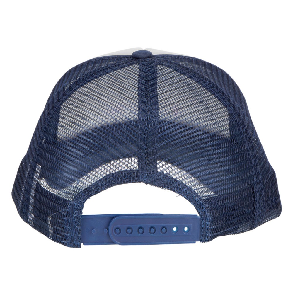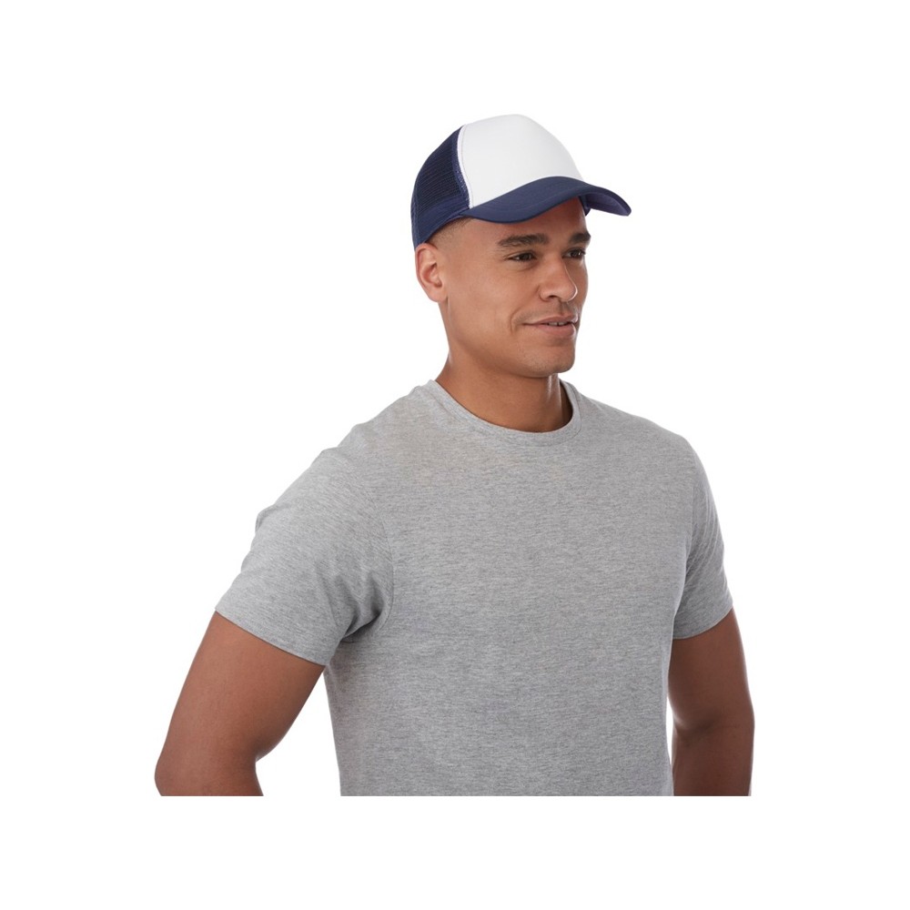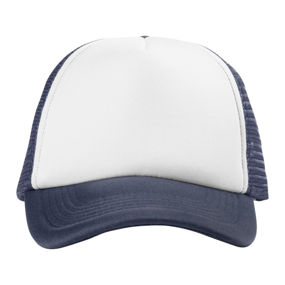 Кепка из 5 панелей Trucker. Оригинальная кепка на окружность головы 58 см с передней поролоновой частью, пластиковой сеткой сзади и пластиковой застежкой. Эта кепка полностью соответствует требованиям к соединениям AZO, формальдегиду и ПХФ. Полиэстер и поролон.