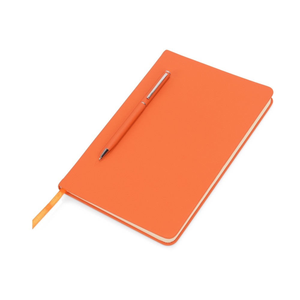 Блокнот формата А5 в твердой обложке со скруглёнными углами и блоком в линейку на 80 листов. Благодаря скрытой магнитной ленте на блокноте можно легко и надежно закрепить металлическую ручку. Зона с магнитом обозначена тиснением в форме ручки.