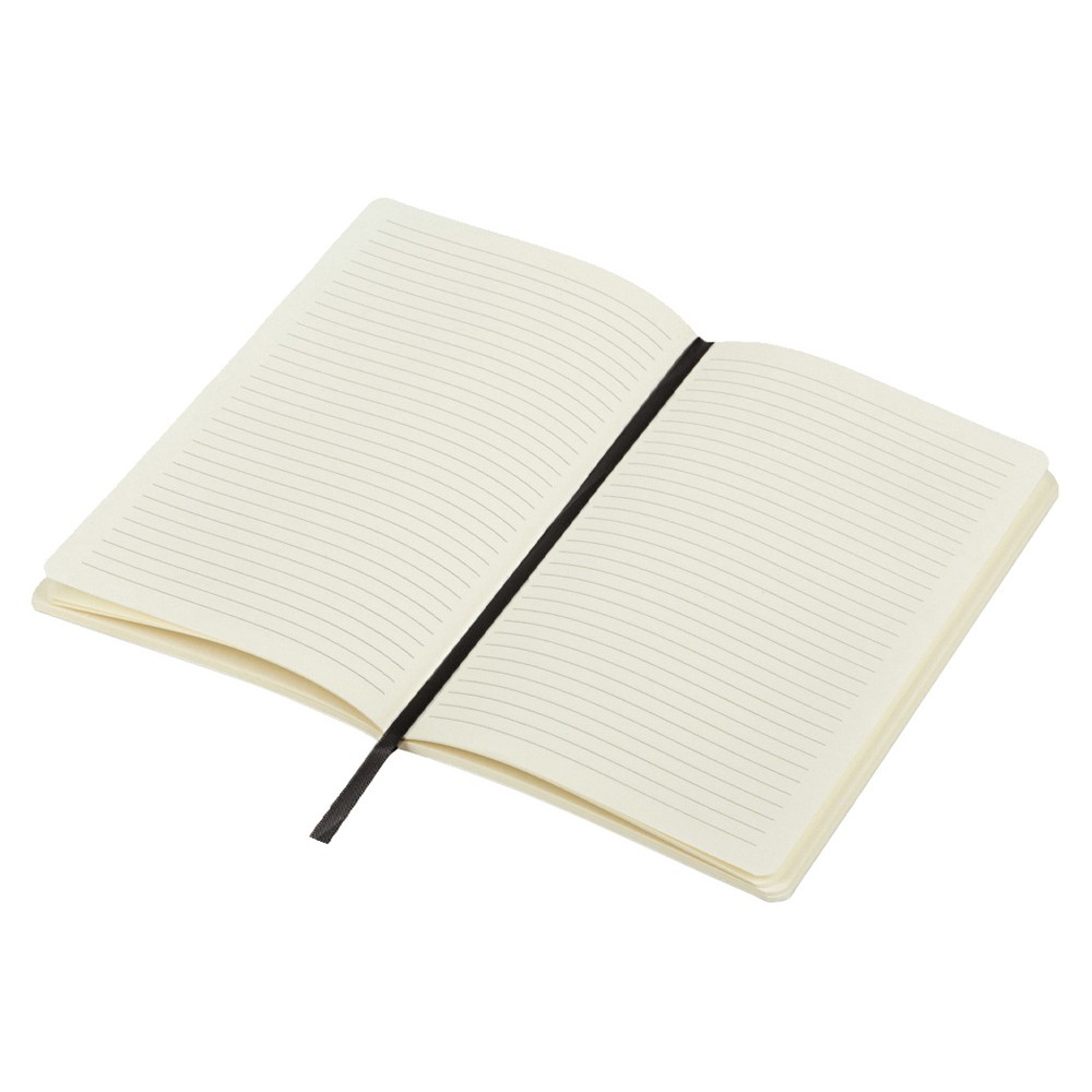 Блокнот в мягкой обложке с закругленными углами представлен в широком ассортименте цветов. Внутри 80 листов кремового блока плотностью 70 г/м2 и ляссе в цвет обложки, которая упрощает навигацию по блокноту.