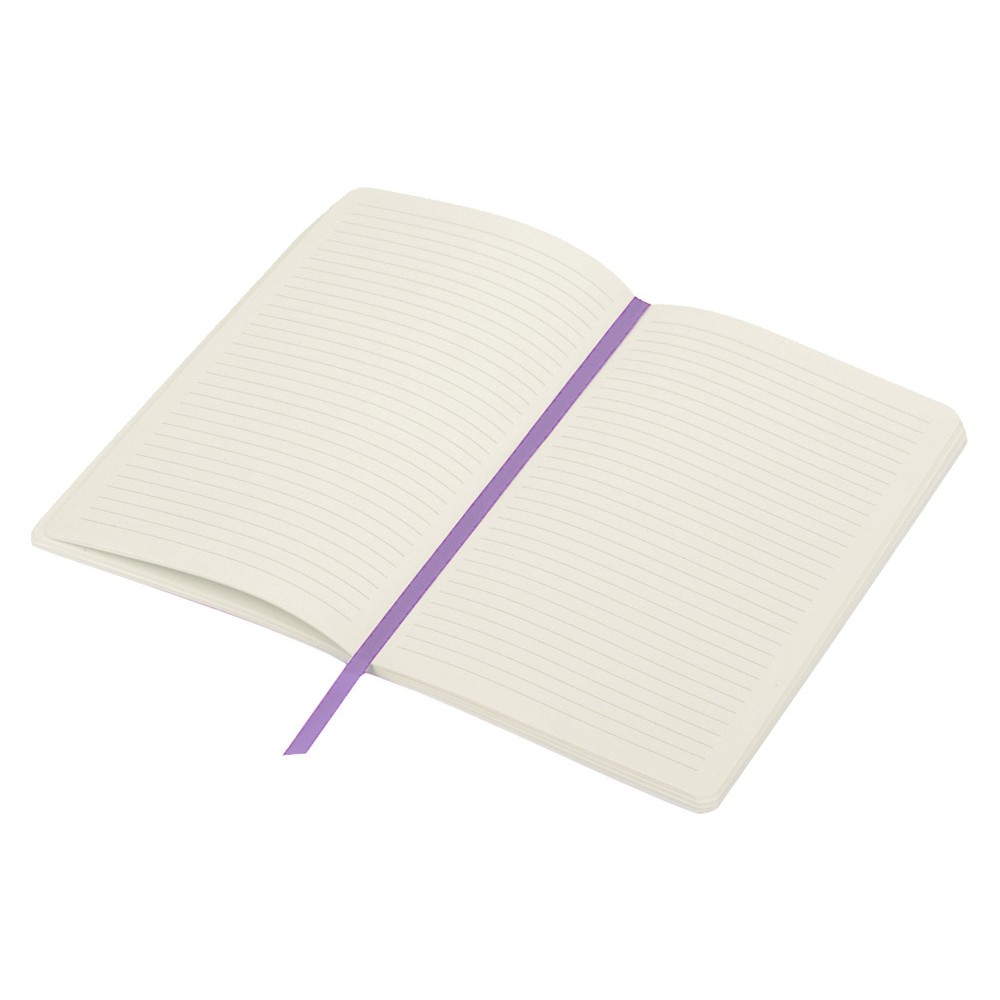Блокнот в мягкой обложке с закругленными углами представлен в широком ассортименте цветов. Внутри 80 листов кремового блока плотностью 70 г/м2 и ляссе в цвет обложки, которая упрощает навигацию по блокноту.
