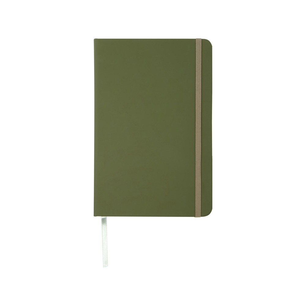 Блокнот А5 с цветной резинкой и закладкой. 96 листов белой бумаги (60 г/м2). FSC certified paper, PU Plastic. FSC Mix Credit P7.1 CU-COC-877277.