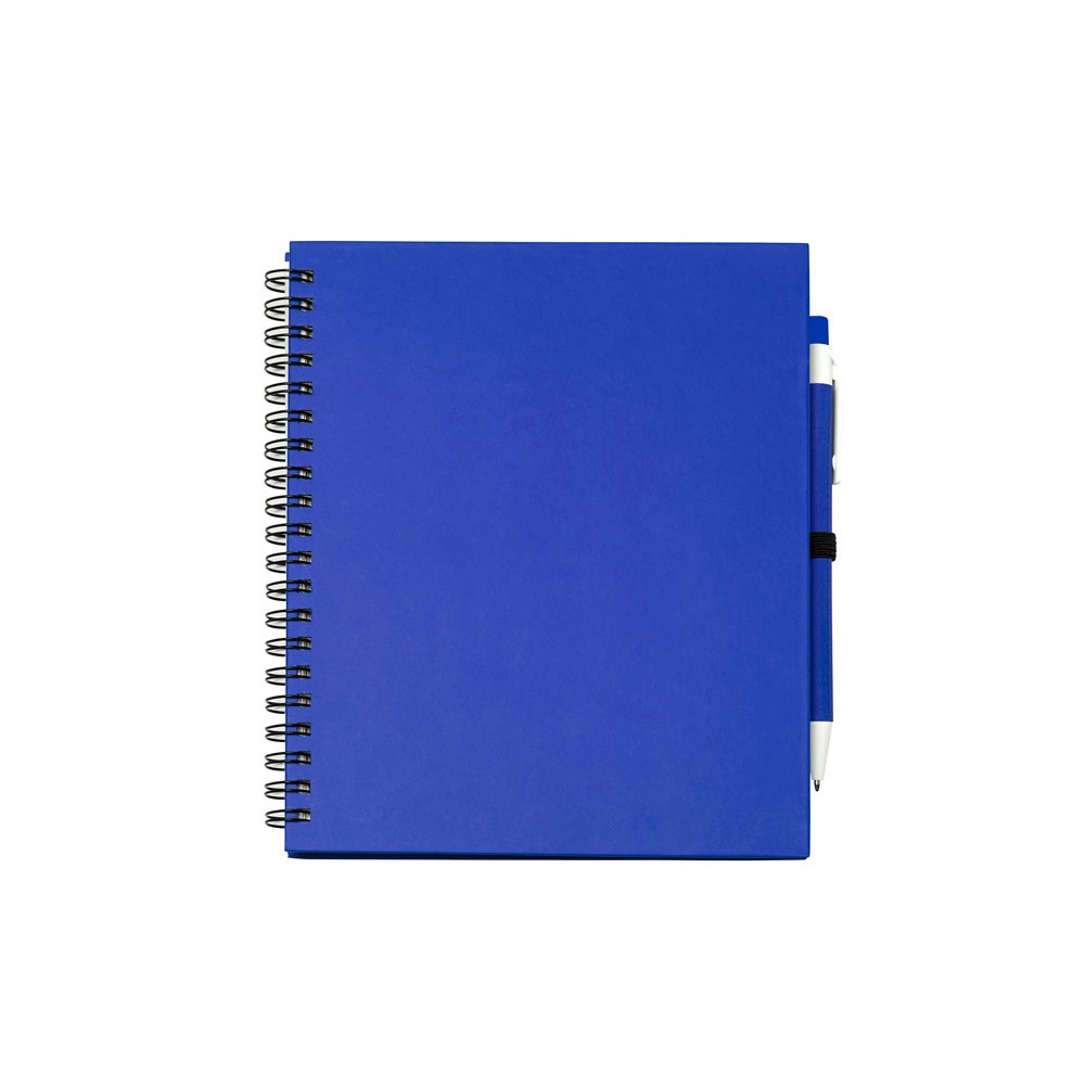 Блокнот на спирали с простыми листами и держателем для ручек. Твердая обложка и ручка из переработанного картона. 70 листов.