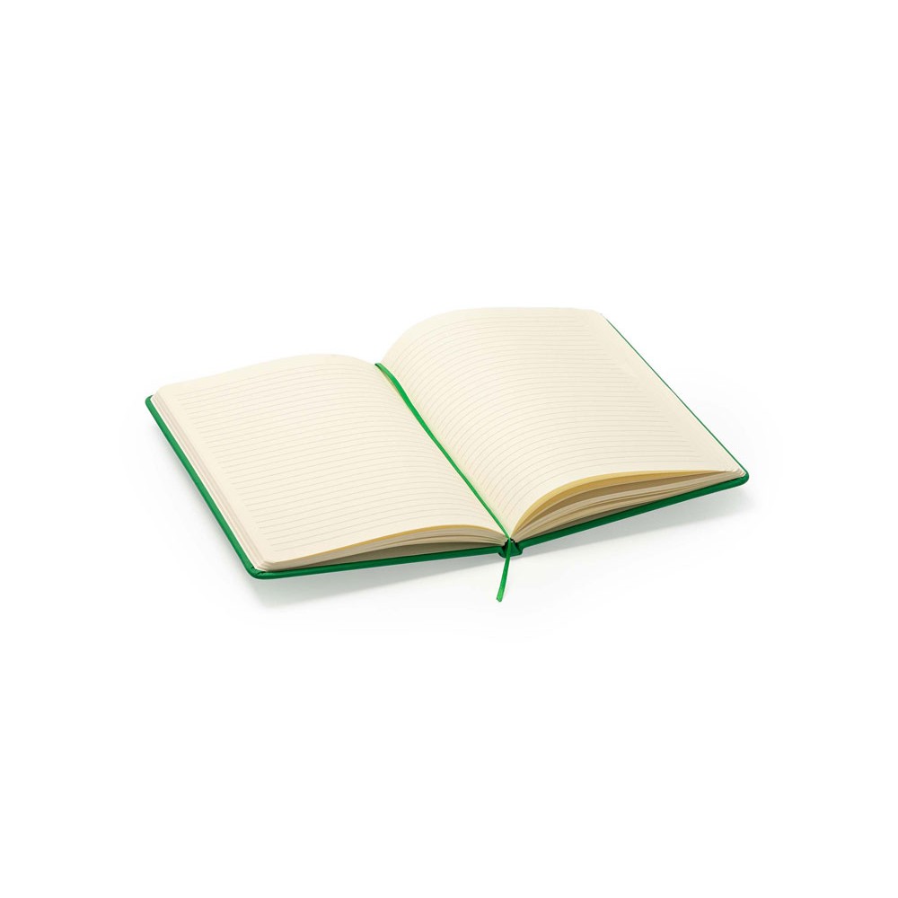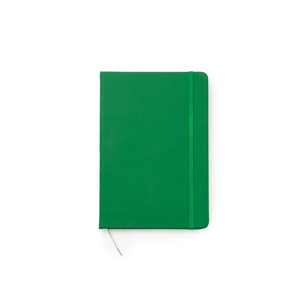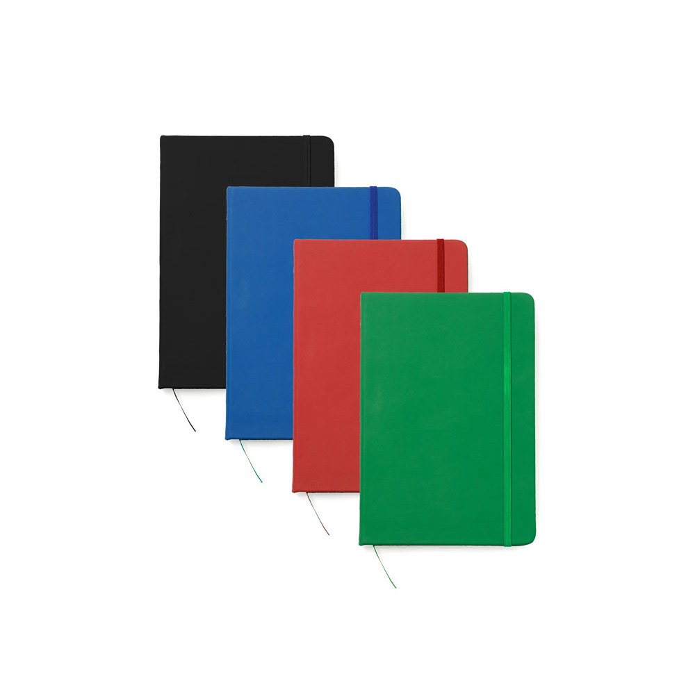 Блокнот формата А5 в обложке из искусственной кожи. Закладка и резинка. 100 листов в линейку.