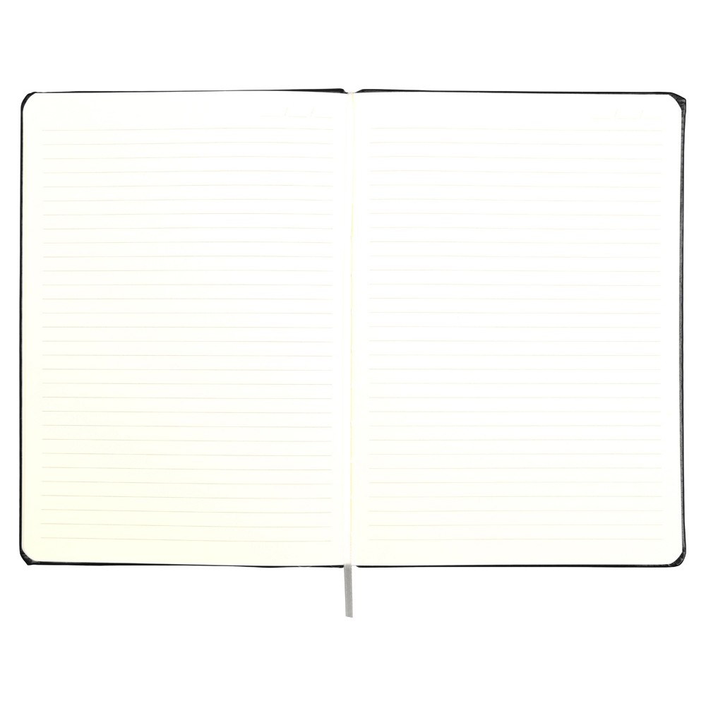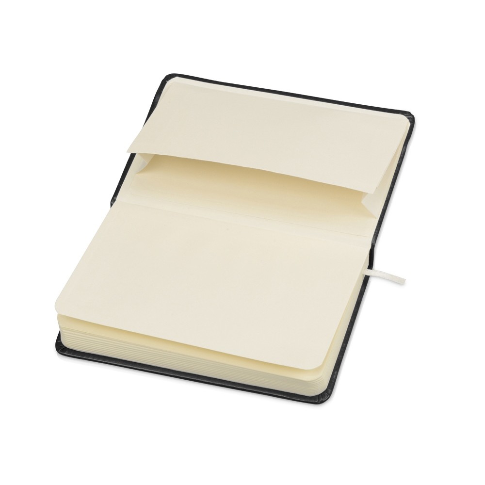 Линованный блокнот формата А5 с закладкой, эластичной застежкой и удобным карманом для карточек и записок.