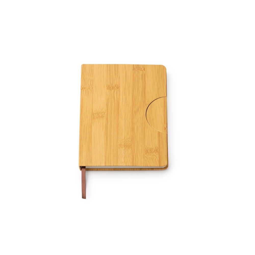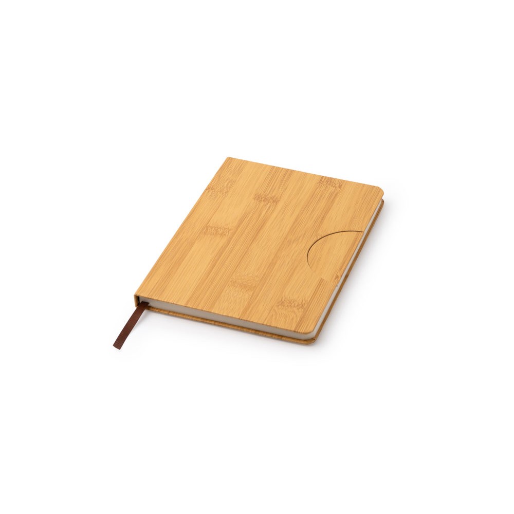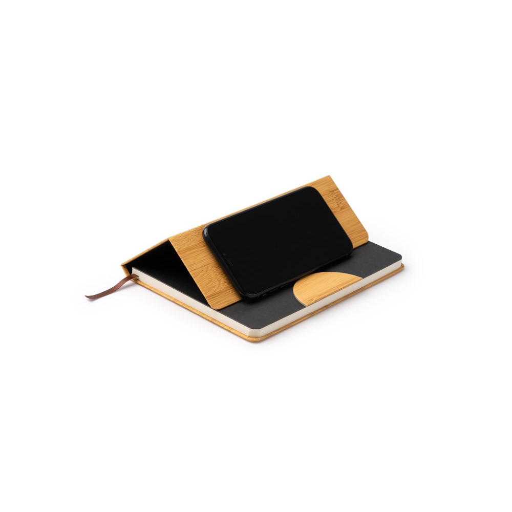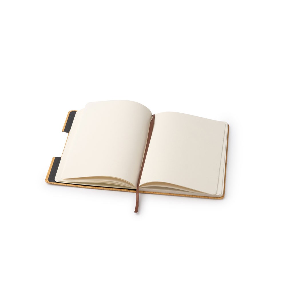 Блокнот формата А5 с жесткой обложкой с эффектом бамбука и функцией подставки. Закладка и 80 простых листов.