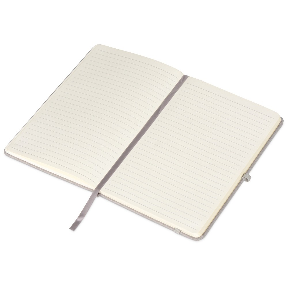 Лаконичный дизайн, приятная на ощупь твердая обложка имеет фактуру ткани. В блокноте 160 линованных страниц кремового цвета с плотностью 80 г/м2, петля для ручки, лента-закладка и удобный карман для карточек и записок.