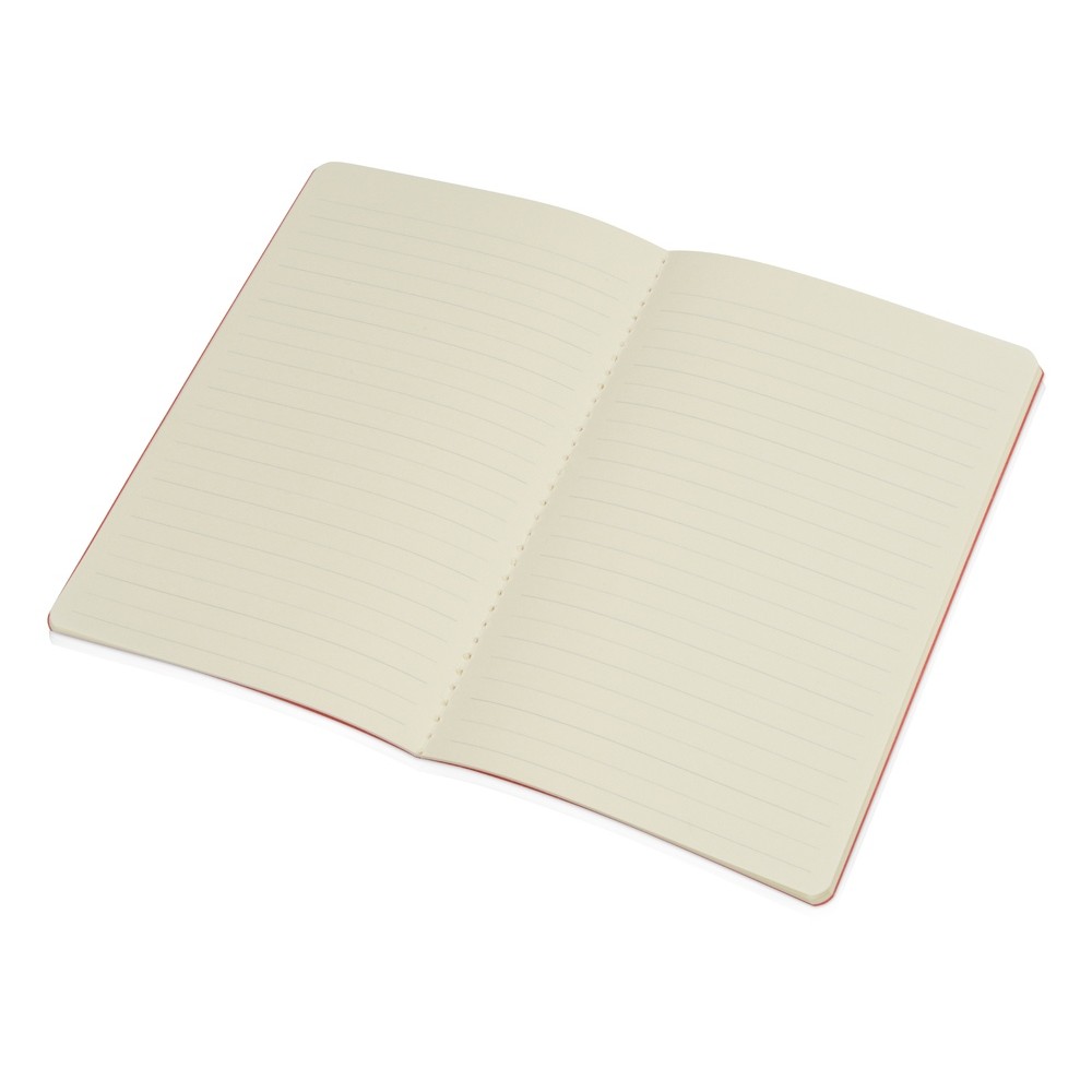 Универсальный блокнот в трендовых оттенках. Обложка матового цвета с эффектом "меланж". Прошитый нитками блок на 60 линованных страниц.