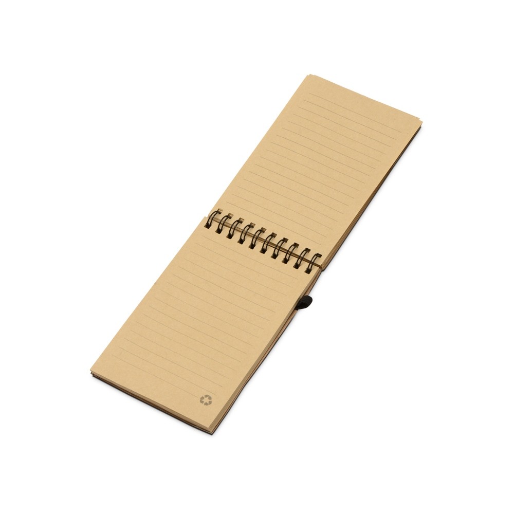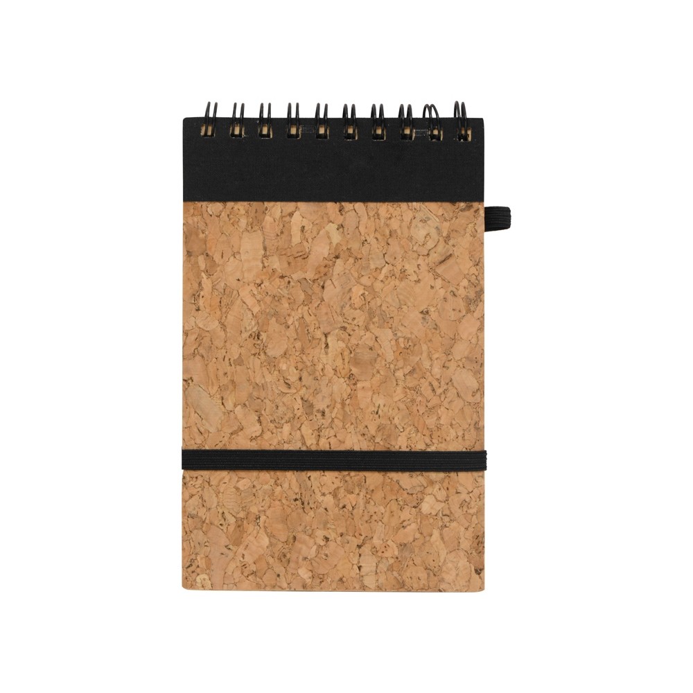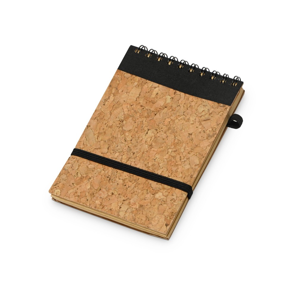 Оригинальный блокнот с обложкой из пробки и картона, а также блоком из переработанной бумаги. Петля для ручки и горизонтальная резинка расширяют функциональность.