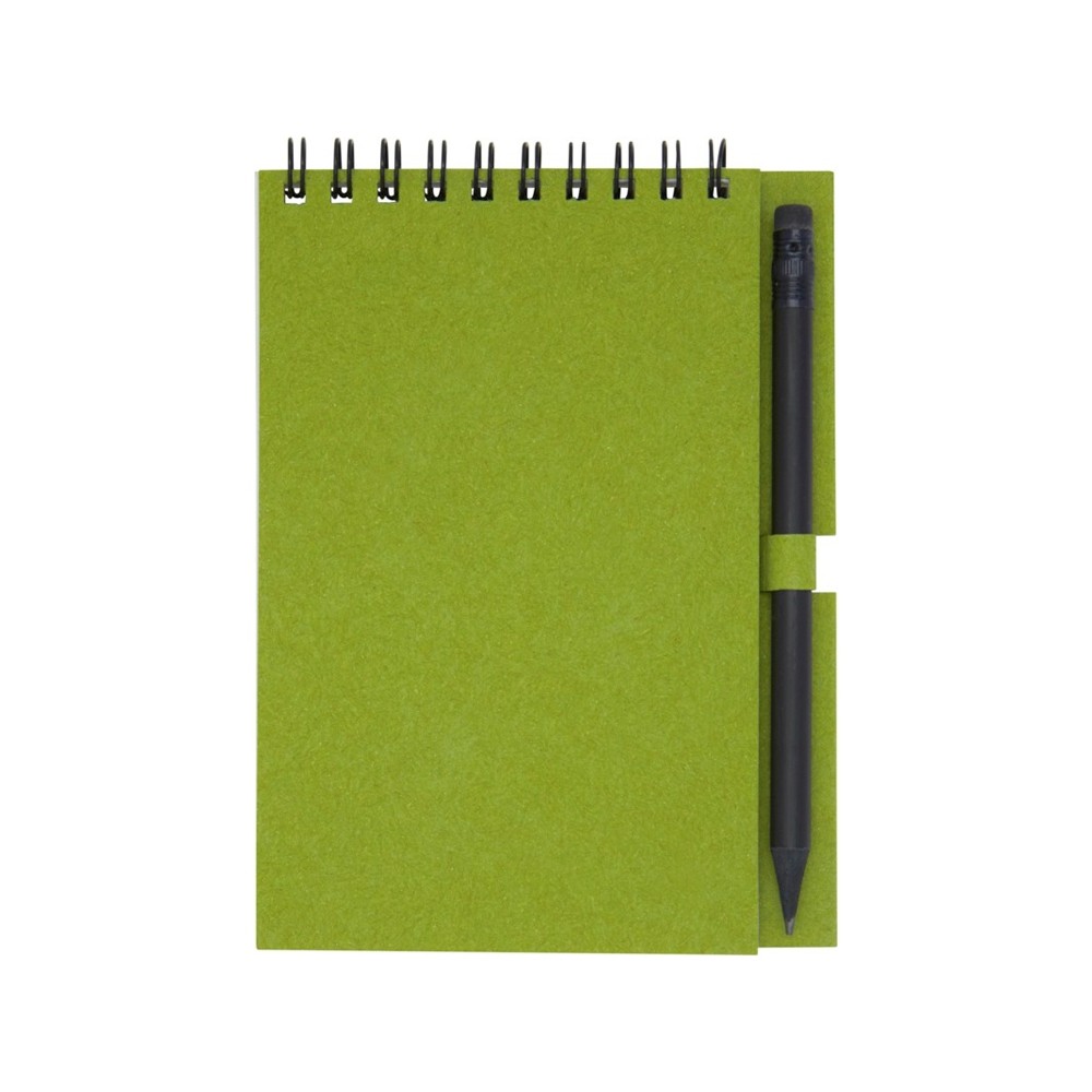 Блокнот Luciano Eco на пружине, с карандашом, маленький, зеленый