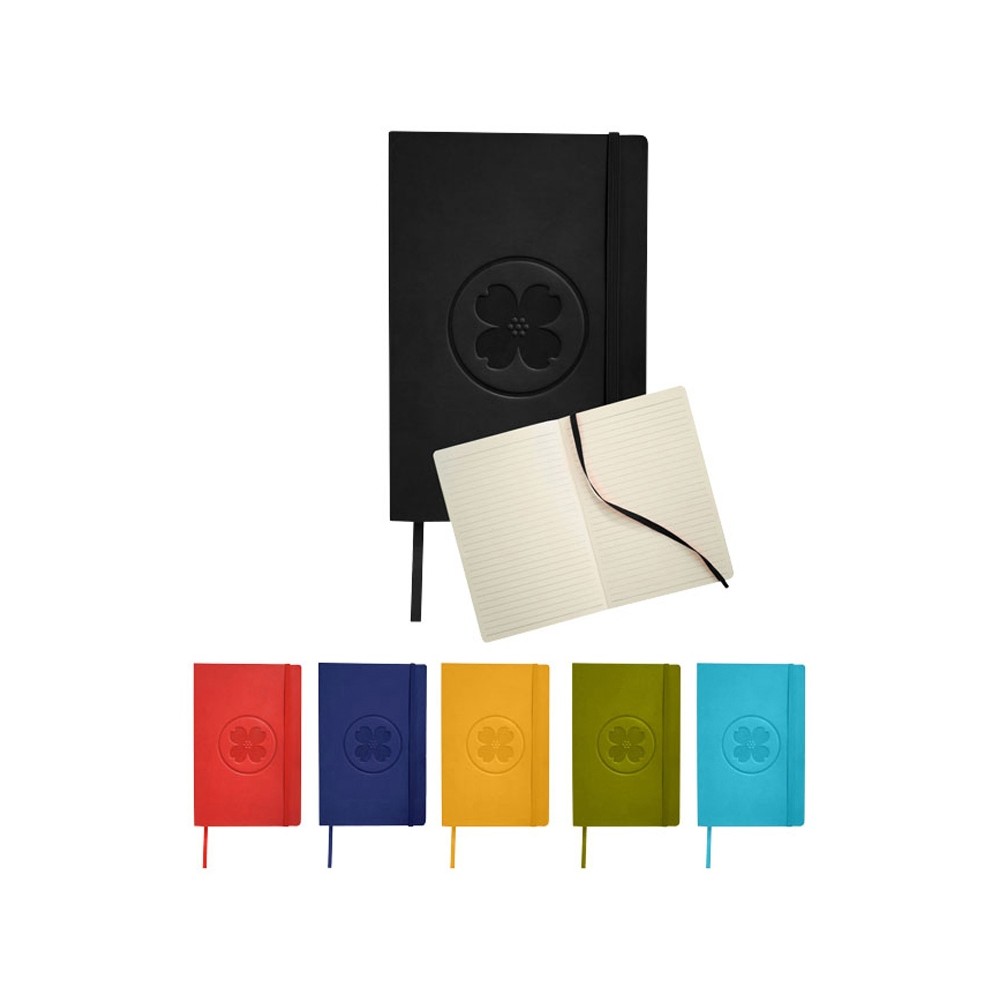 Классический блокнот с мягкой обложкой. Блокнот с мягкой на ощупь обложкой (ориентир размер А5) с эластичной застежкой, закладкой, кармашком для заметок внутри и 80 листов линованной бумаги (80 г/м²). Термо ПУ.