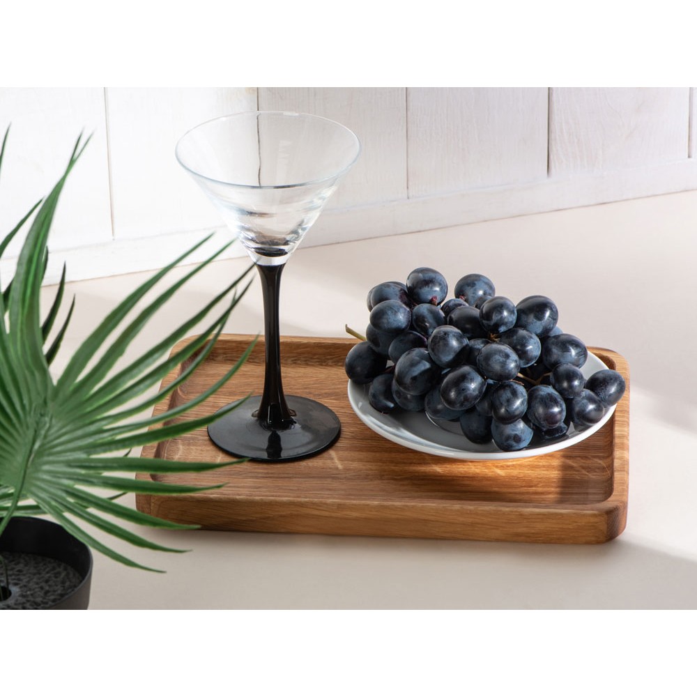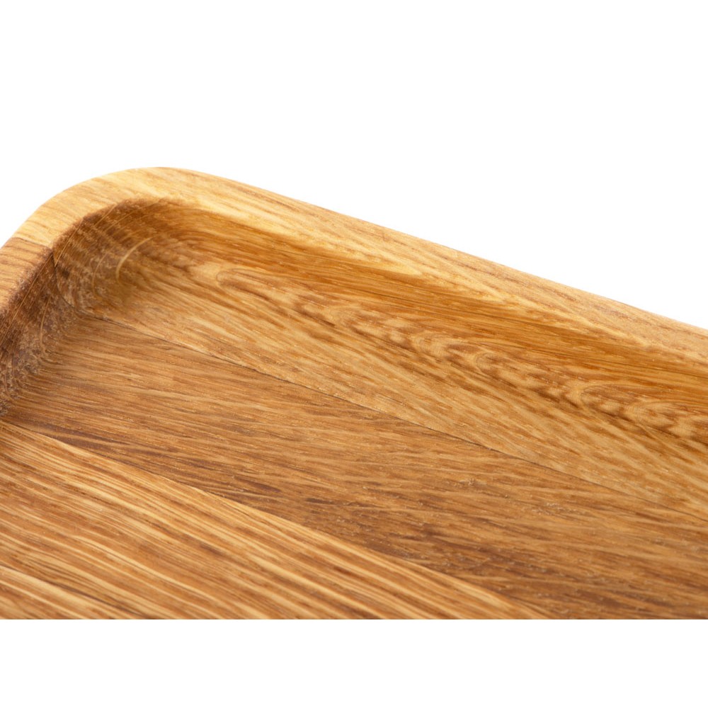 Универсальный деревянный поднос от Eat&Bite, который в перевернутом виде может играть роль разделочной доски — нижняя часть не имеет выступов, абсолютно плоская. Выполнен из натурального дуба, обработанного натуральным растительным маслом, которое обеспечивает изделию более долгую жизнь.