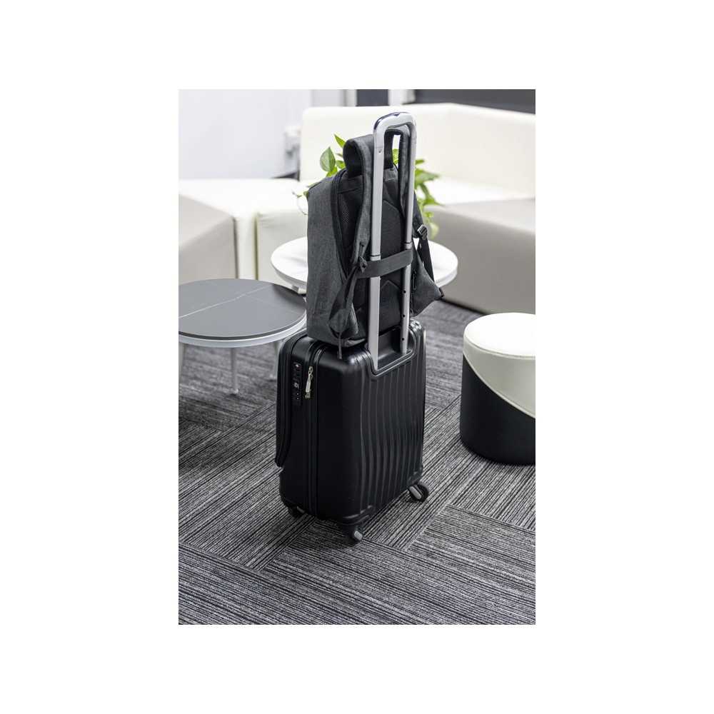 Компактный и легкий рюкзак Phantom Mini отличается большим удобством в использовании и выполнен из водоотталкивающего переработанного материала, стойкого к износу и к загрязнению. Это незаменимый стильный аксессуар - с рюкзаком можно передвигаться по городу и брать в поездки, для этого предусмотрен ремень для крепления на ручку чемодана. С ним не нужно беспокоиться о сохранности вещей, благодаря конструкции - молния скрыта от несанкционированного доступа. Внутри расположен карман для ноутбука и небольшой карман на молнии для ваших личных вещей. Светоотражающая полоса спереди обеспечивает дополнительную защиту в темное время суток. Удобные мягкие лямки регулируются по длине. В комплекте съемный металлический шильд под нанесение вашего логотипа.