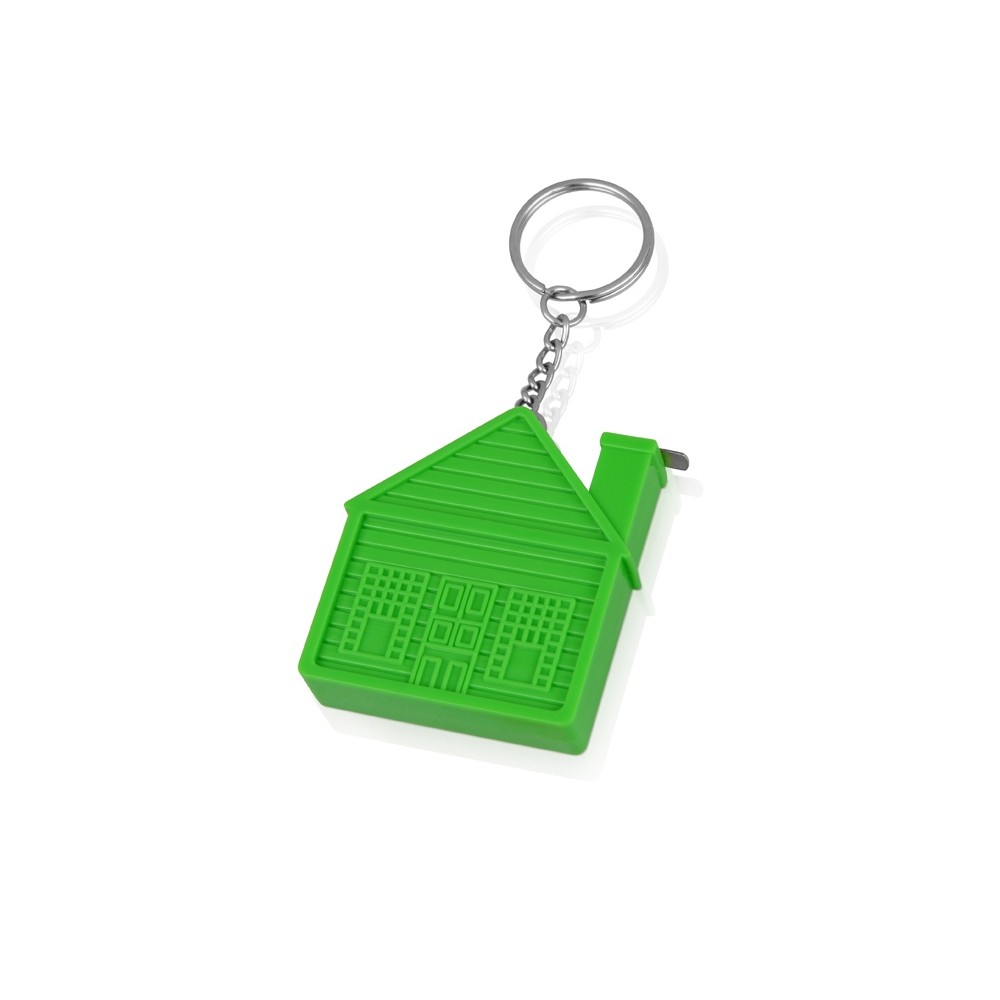 Брелок в форме домика подчеркнет специализацию строителей, риелторов и прочих работников жилищной сферы. Брелок оснащен рулеткой 1 м., с помощью которой вы в любое время сможете произвести нужные измерения.