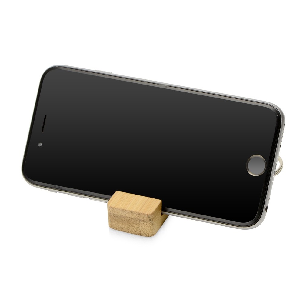 Этот брелок из бамбука станет отличным многофункциональным аксессуаром: и брелоком для ключей, и удобной подставкой для телефона. Выемка для телефона 27 х 13 х 12 мм.