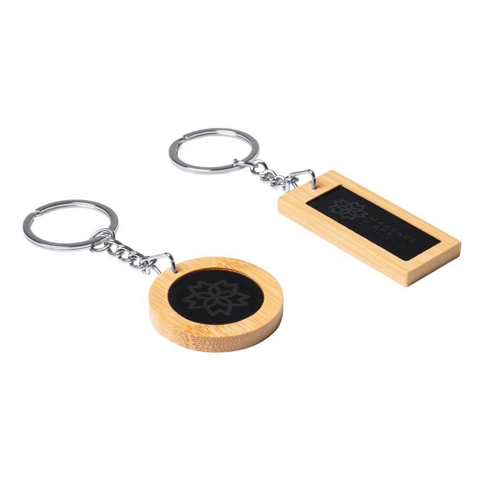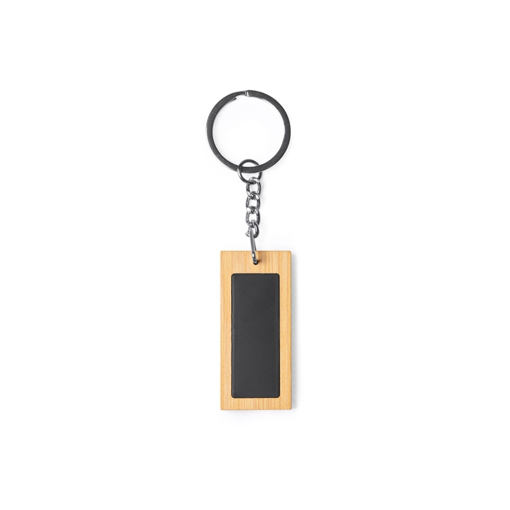 Прямоугольный брелок из бамбука и стали. Идеально подходит для лазерной гравировки.