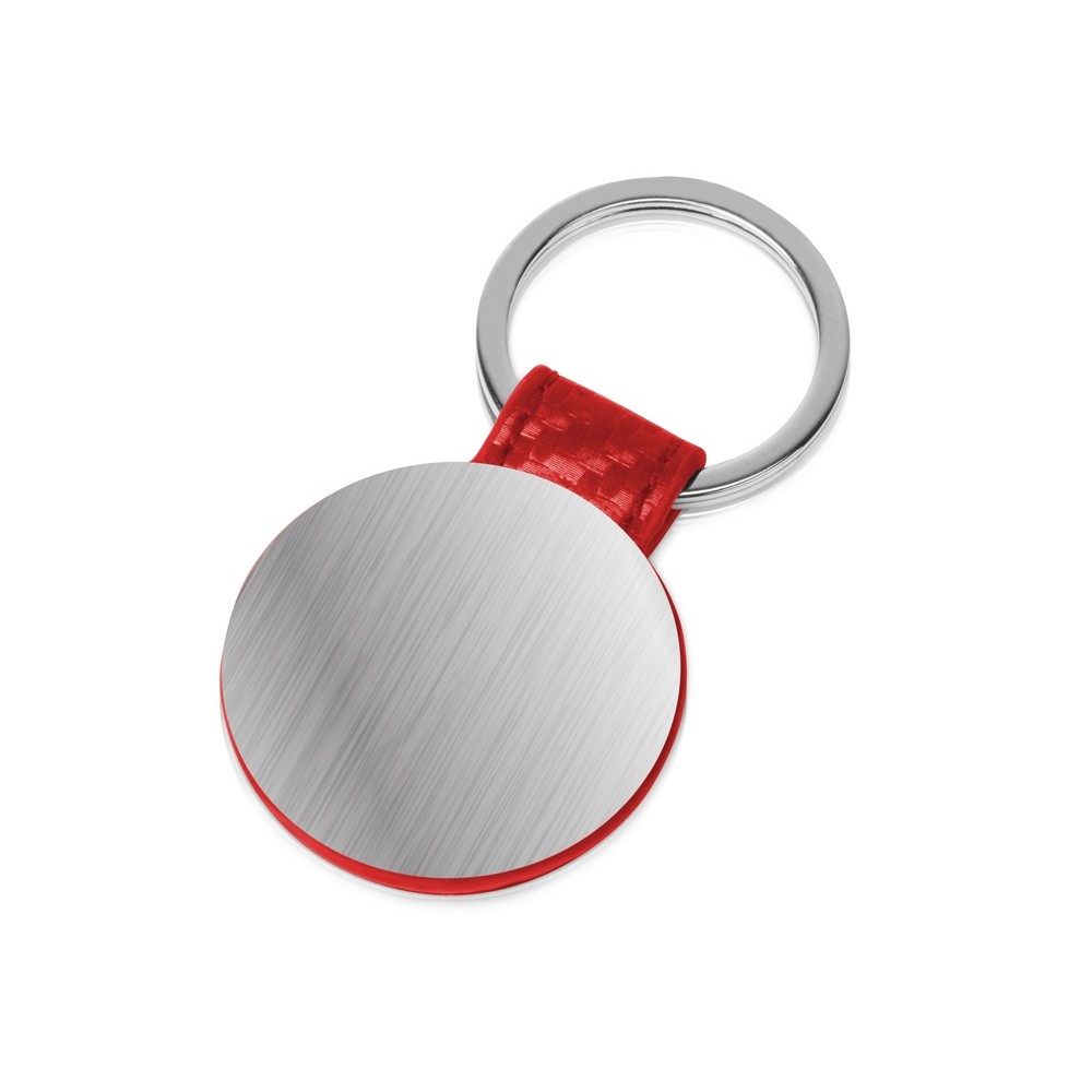 Оригинальный брелок с двумя металлическими пластинами для нанесения. Цветные детали из искусственной кожи создают особое настроение и помогут подчеркнуть цветовое решение логотипа.