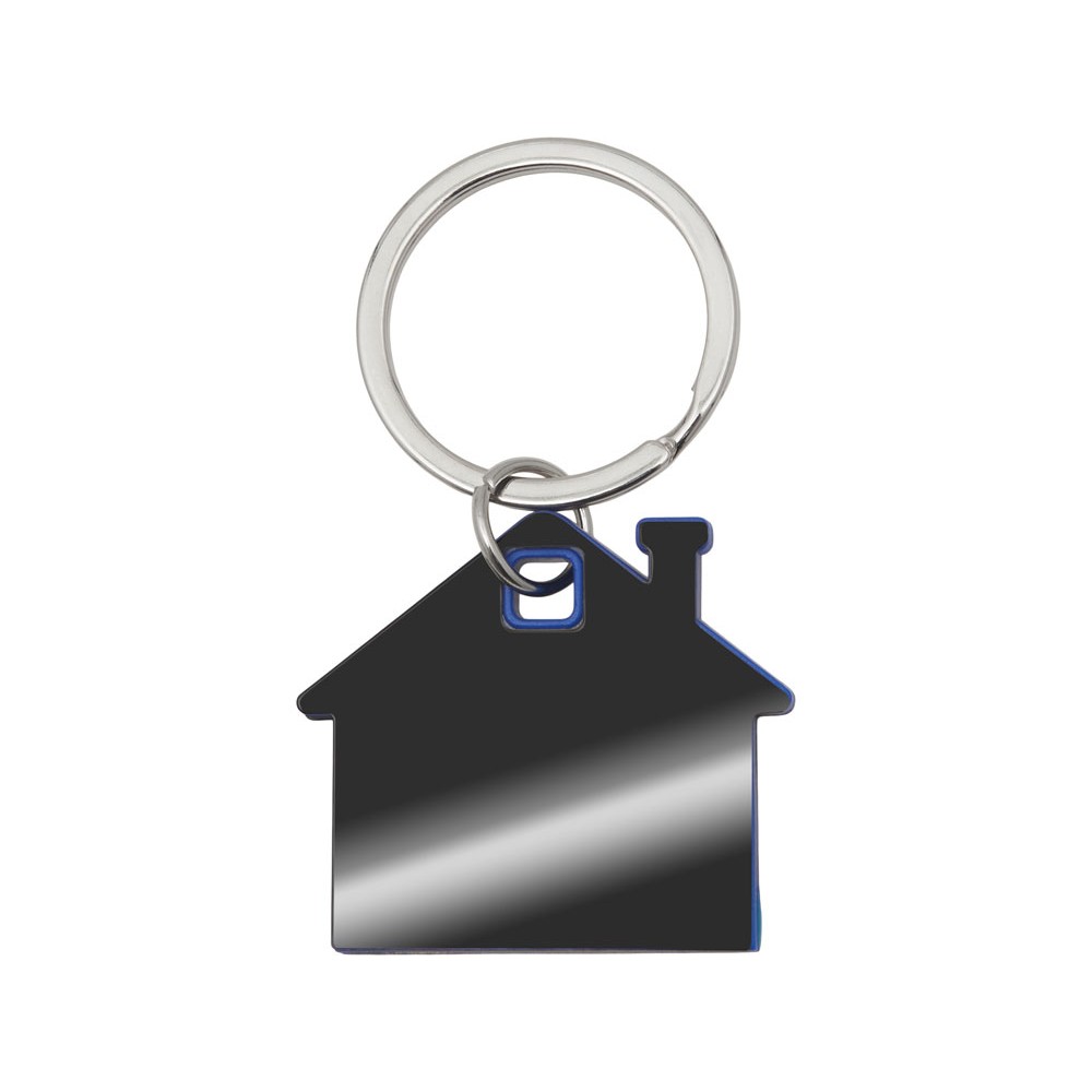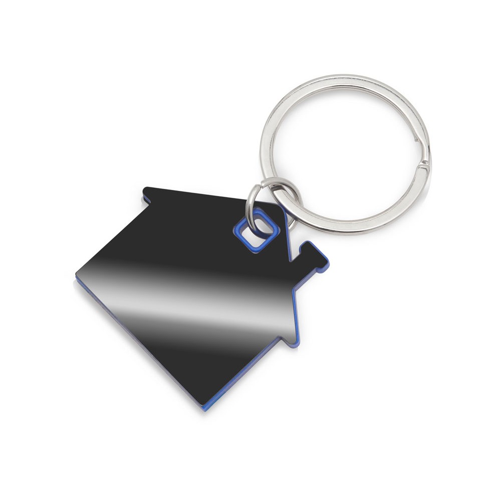 Металлический брелок с пластиковой цветной вставкой "SteelPop House", серебристый с синим