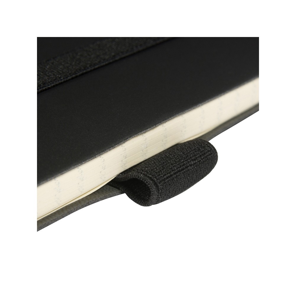 Гибкая (flex) обложка с углами закругленной формы, фиксирующая резинка и ляссе в цвет обложки, петля для ручки и картонный карман для бумаги на внутренней стороне обложки наделяют блокнот практичностью.