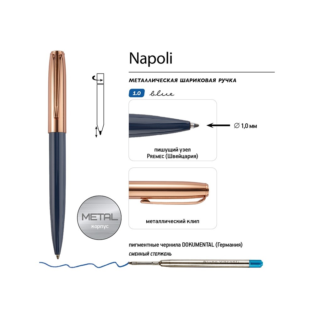 Технические характеристики Ручка металлическая шариковая "Napoli", синий/розовое золото
