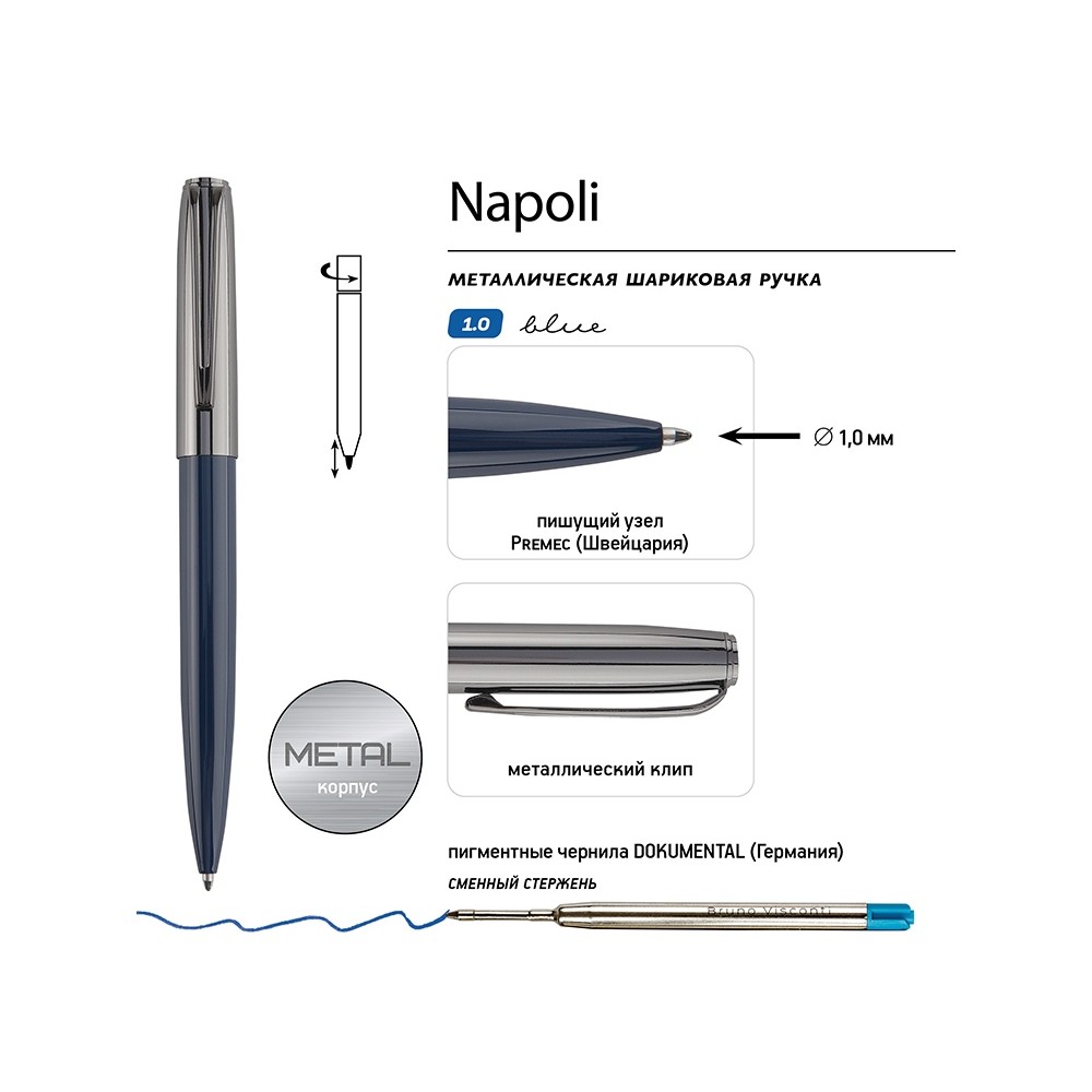 Технические характеристики Ручка металлическая шариковая "Napoli", синий/вороненая сталь