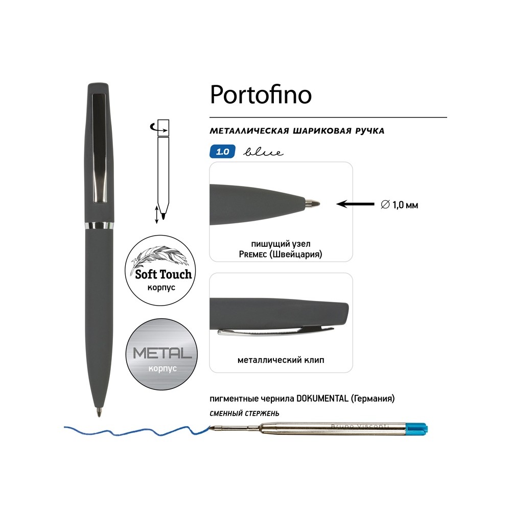 Технические характеристики Ручка металлическая шариковая "Portofino", софт-тач, 1.0 мм, серый