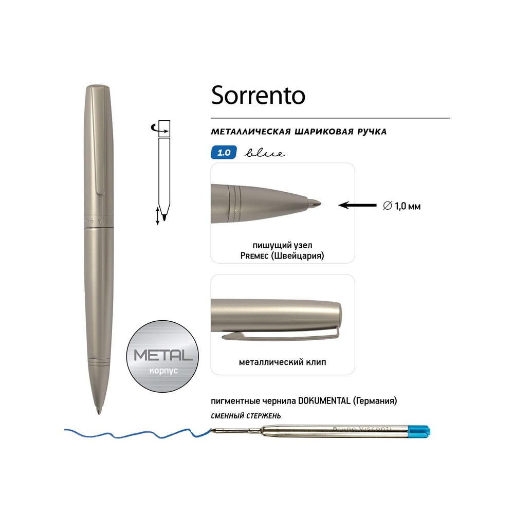 Роскошная металлическая шариковая ручка с синими чернилами из коллекции Sorrento.