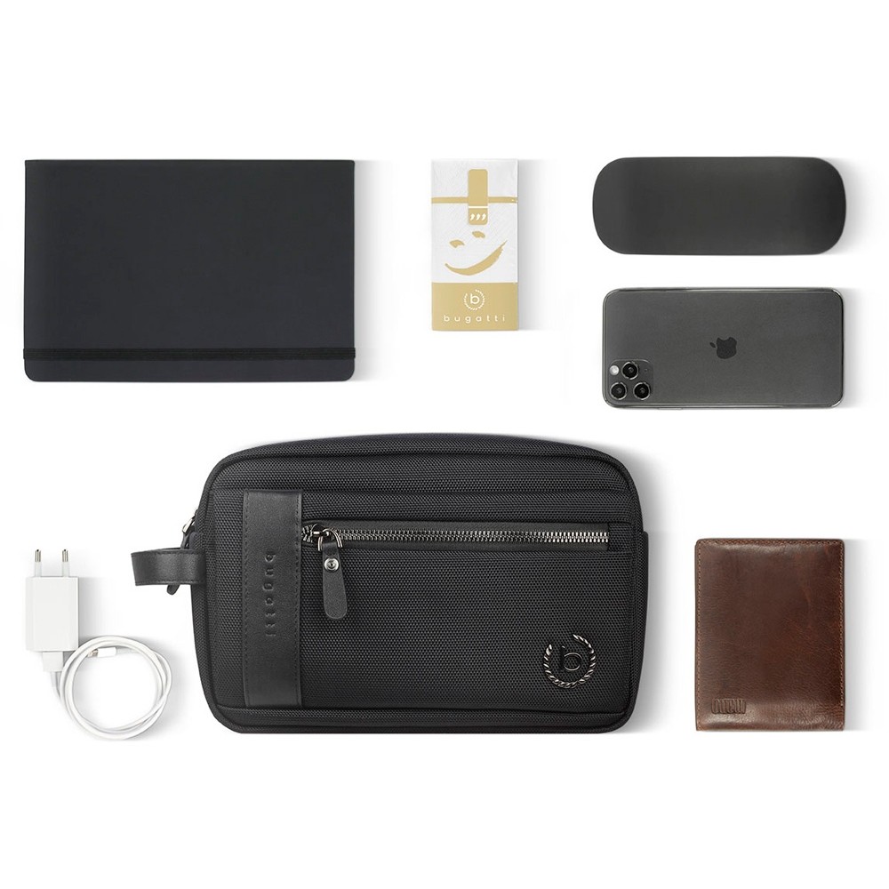 • Несессер мужской BUGATTI НЕРО | NERO, чёрный, нейлон 1680D/кожа, 24х7,5х16 см