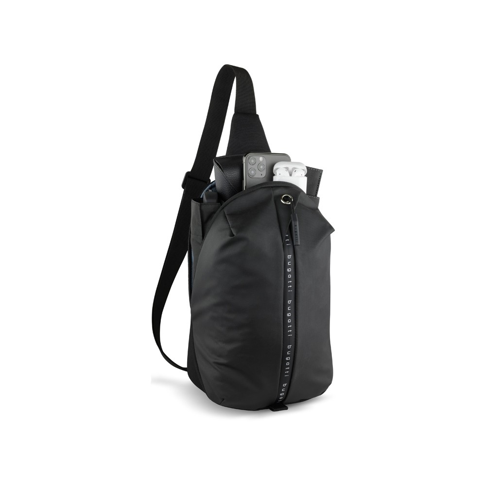 • Рюкзак с одним плечевым ремнем BUGATTI БЛАНК ОБЛЕГЧЕННАЯ | BLANC DELIGHT, чёрный, нейлон RPET600D/тарпаулин/полиэстер, 18х10х31 см, 5 л