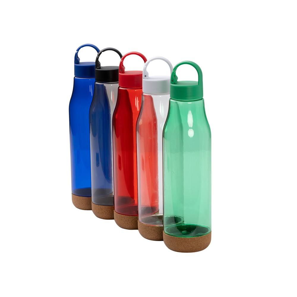 Бутылка с пластиковым корпусом и пробковым дном. Ручка для переноски с карабином на крышке. Объем: 720 мл. Упаковка: эко-дизайн.