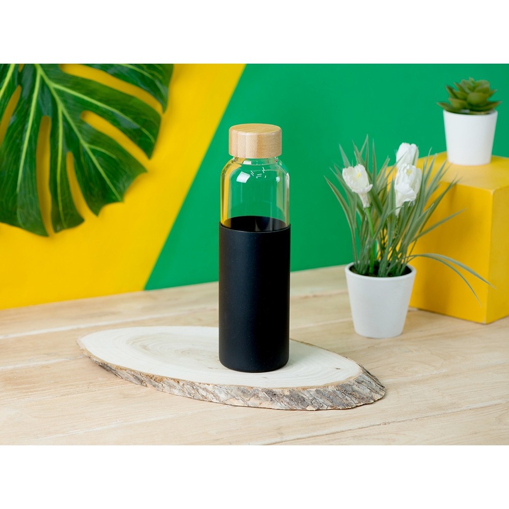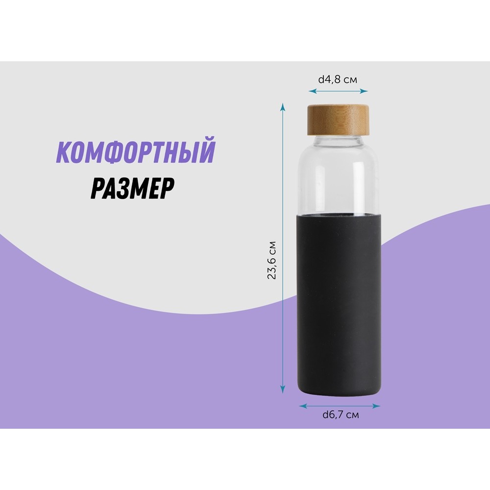 Бутылка для воды стеклянная "Refine", в чехле, 550 мл, черный
