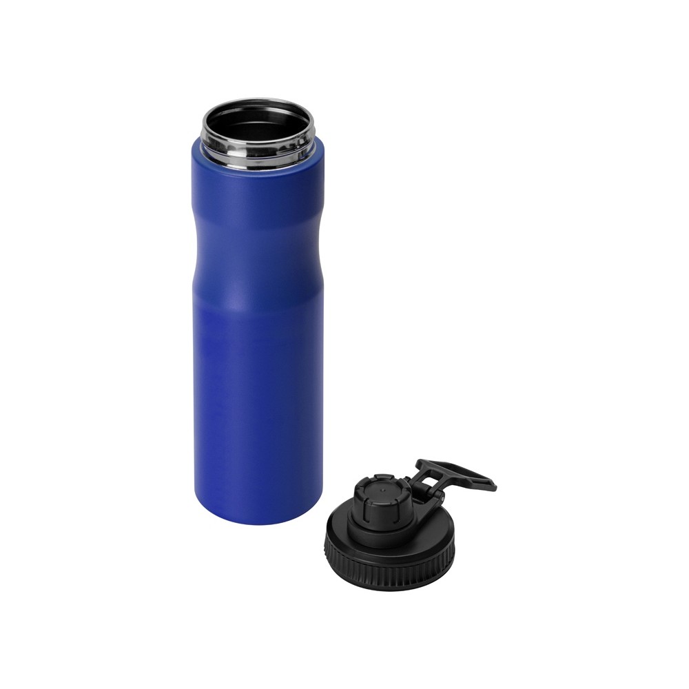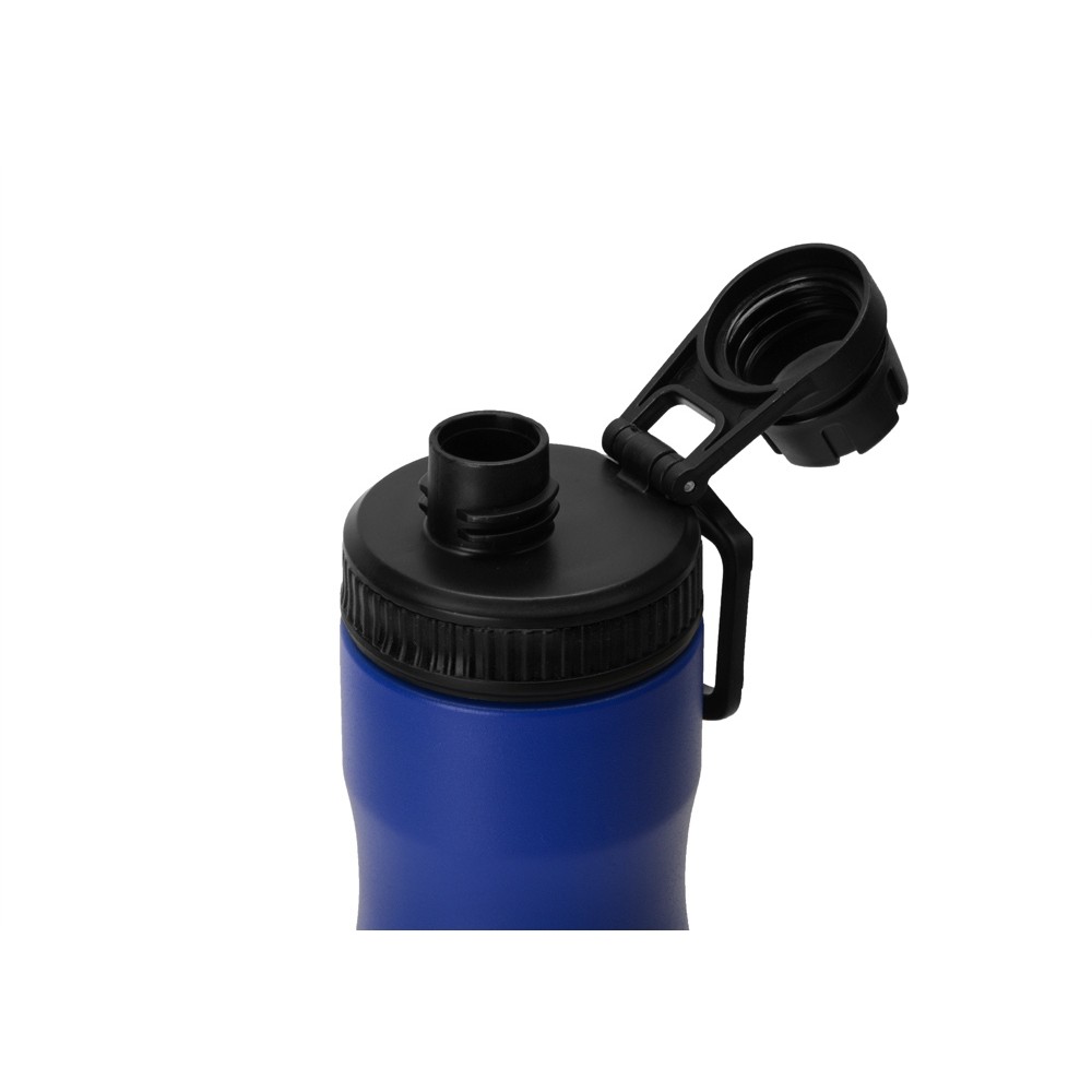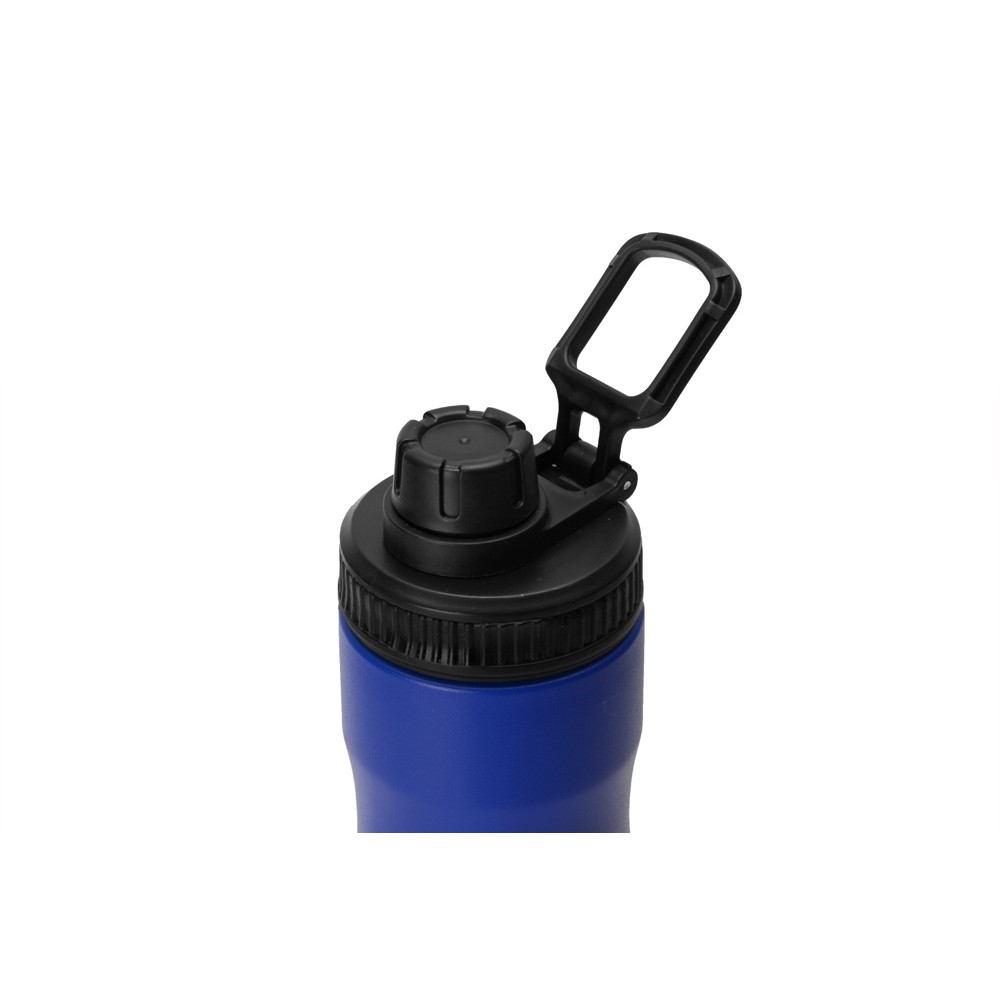 Крышка оснащена складной ручкой-держалкой, которая может быть использована для подвешивания или переноски, а также нетеряемым колпачком. Широкое питьевое отверстие позволяет быстро утолить жажду во время занятий спортом. Рельефное силиконовое кольцо по краю крышки поможет вам быстро и легко отвинтить ее от бутылки.