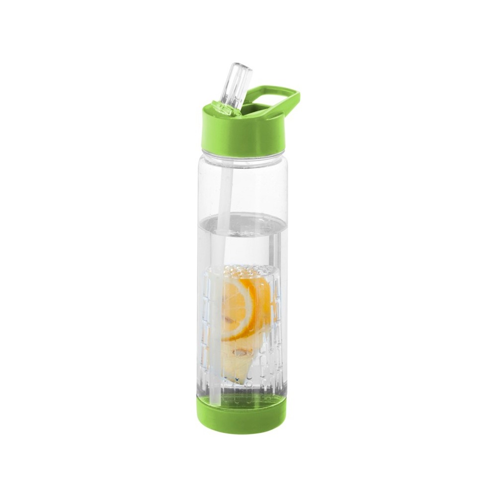 Оригинальная бутылка для воды. Благодаря отделению для фруктов есть возможность создания лимонада на свой вкус. Придется по вкусу любителям натуральных продуктов и здорового образа жизни. Легко разбирается. На пластиковый корпус возможно нанесение тампопечати. Объем – 740 мл.