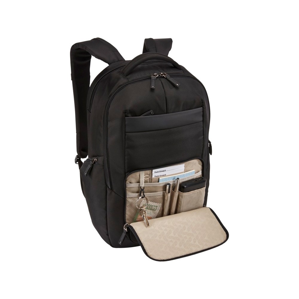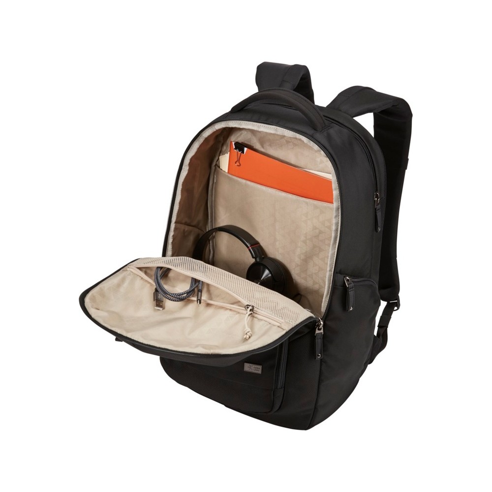 Имеет большое основное отделение на молнии с мягким чехлом для ноутбука 15,6" и планшета 10,1" и сетчатый карман на молнии для кабелей и аксессуаров. Поставляется с передней панелью-органайзером для хранения небольших электронных приборов, кабелей, аксессуаров, визитных карточек и ключей. Имеет расширяемые боковые карманы под бутылку с водой или блок питания, мягкие наплечные ремни, стеганую заднюю панель из сетки, мягкую ручку и рукав для фиксации на выдвижной ручке дорожной сумки. Гарантия от Case Logic: 25 лет.