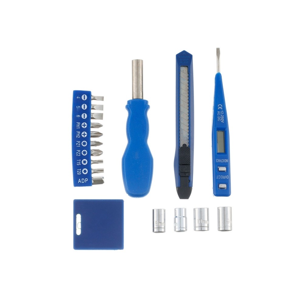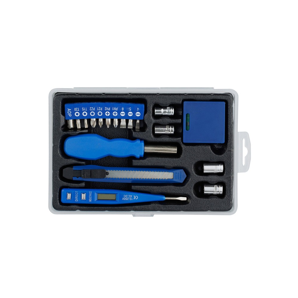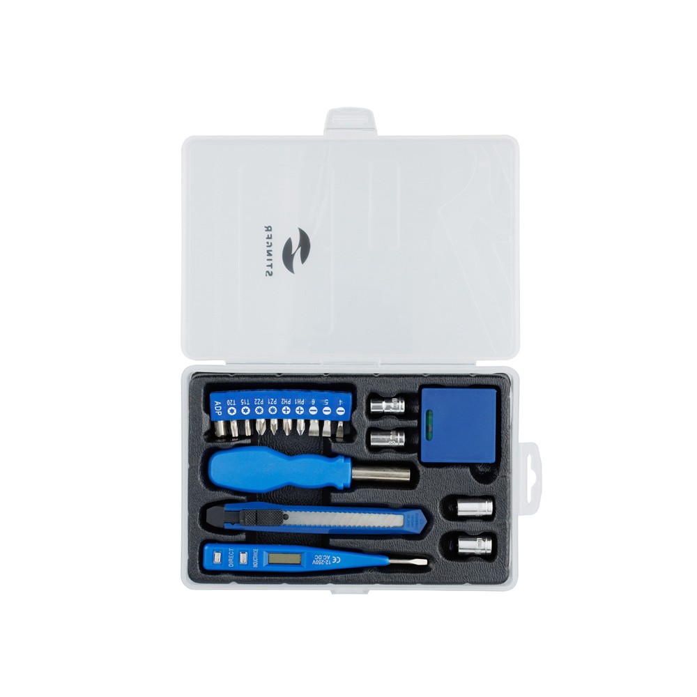 Набор инструментов на 18 предметов STINGER W0504 представляет собой оптимальное сочетание функциональности и качества. В компактном белом кейсе найдется всё для проведения мелкого бытового ремонта. Все предметы изготовлены из высококачественной закаленной углеродистой стали с хромированным покрытием, а рукоятки - из углепластика, обеспечивающего удобное положение инструмента в руке.