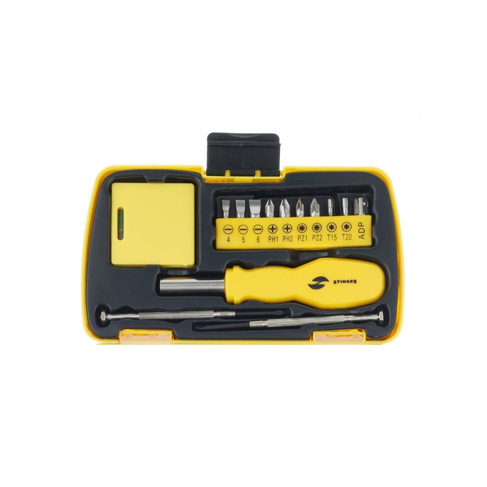 Технические характеристики Набор инструментов Stinger, 20 инструментов, в пластиковом кейсе, 160х90x40 мм, желтый